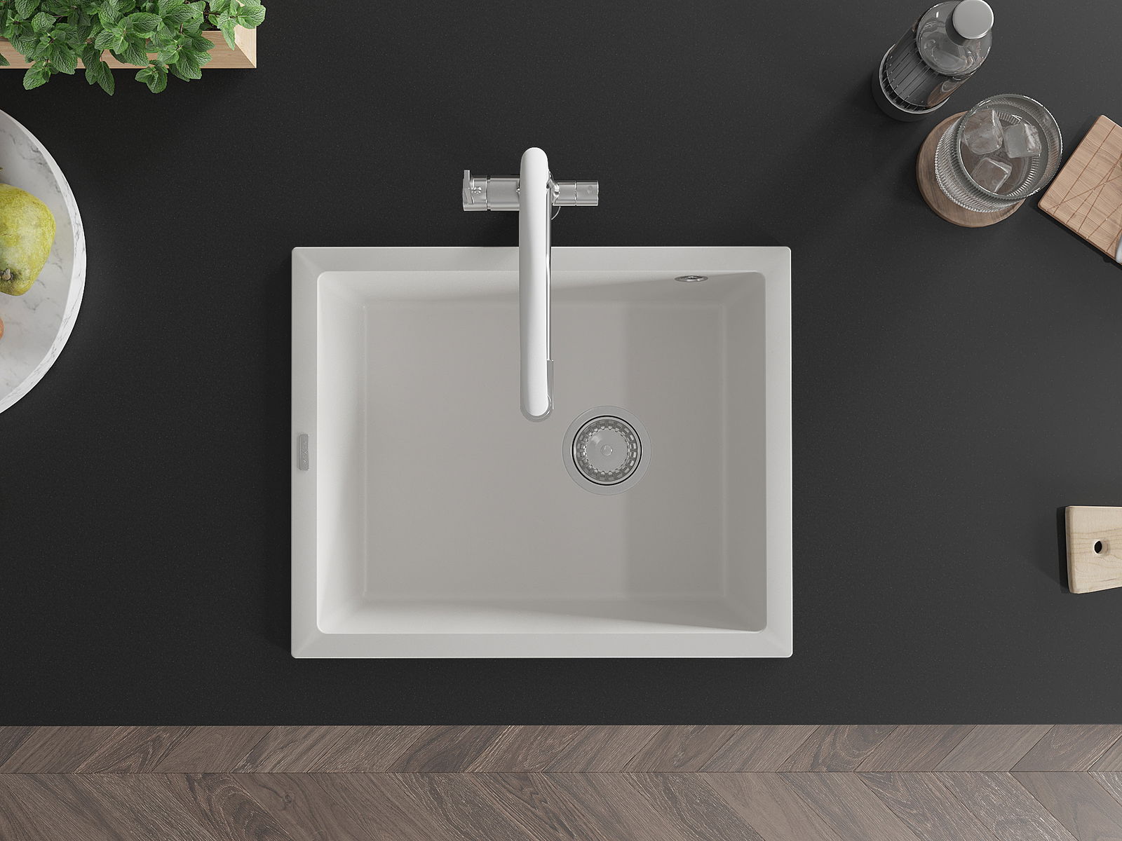 Povrch umývadla je odolný voči škvrnám a sfarbeniu, vďaka čomu sa ľahko čistí a zachováva si svoju farbu po dlhú dobu. Estetický a prakticky dopĺňajúci každú kuchyňu.