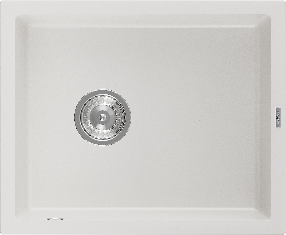 Mexen Pedro granitový drez 1-komorový 560 x 460 mm, biely, sifón chróm - 6508561000-20
