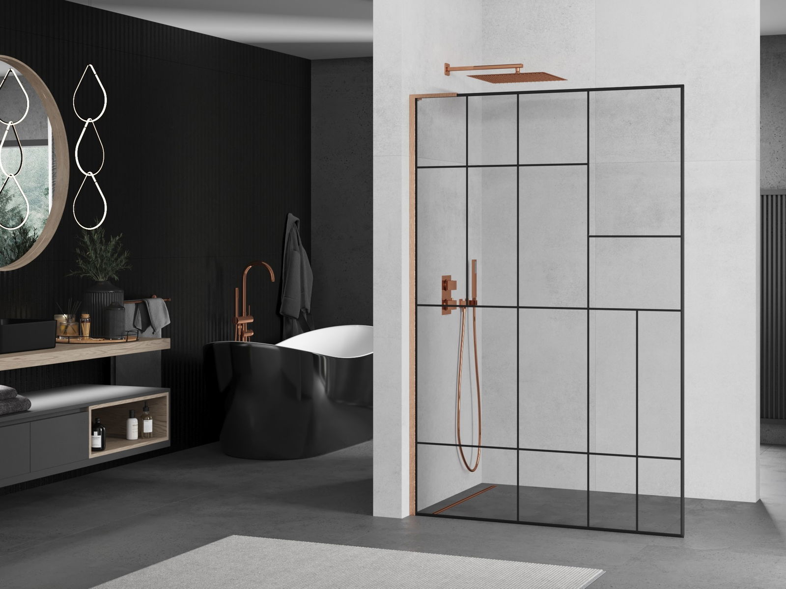 Mexen Kioto L sprchová stena Walk-in 110 x 200 cm, čierny vzor, brúsená meď - 800-110-103-65-78