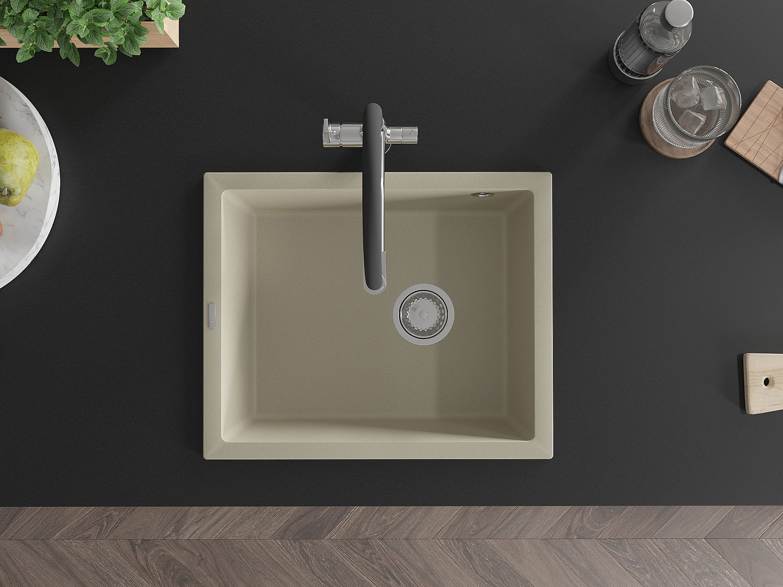 Mexen Pedro žulový drez s 1 komorou 560 x 460 mm, béžový, sifón chróm - 6508561000-69