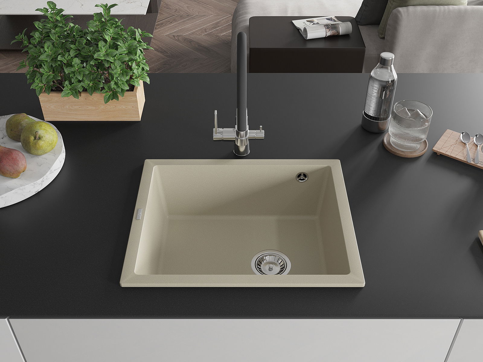 Povrch umývadla je odolný voči škvrnám a sfarbeniu, vďaka čomu sa ľahko čistí a zachováva si svoju farbu po dlhú dobu. Estetický a prakticky dopĺňajúci každú kuchyňu.