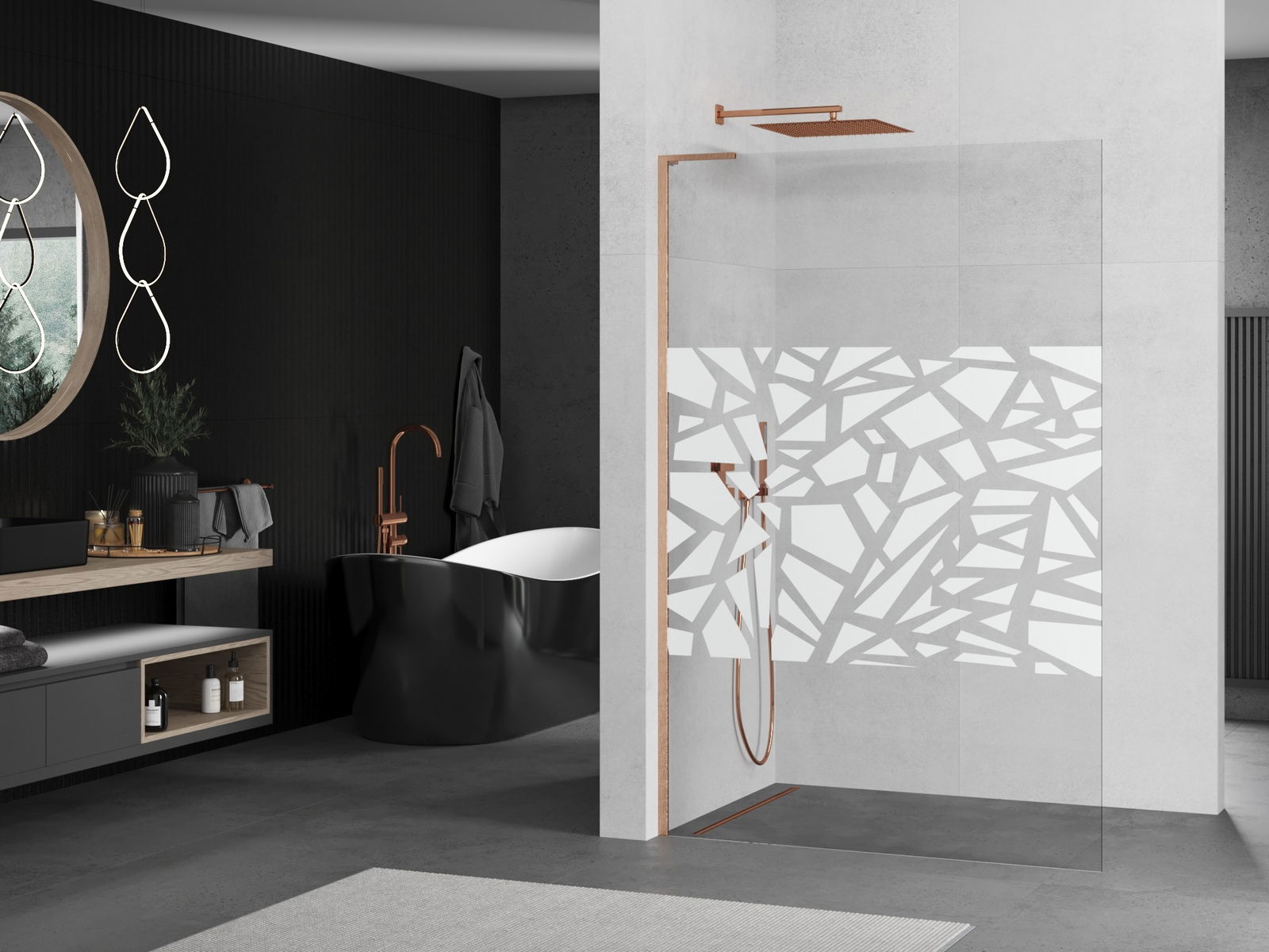 Mexen Kioto L sprchová stena Walk-in 110 x 200 cm, biely vzor, brúsená meď - 800-110-103-65-85