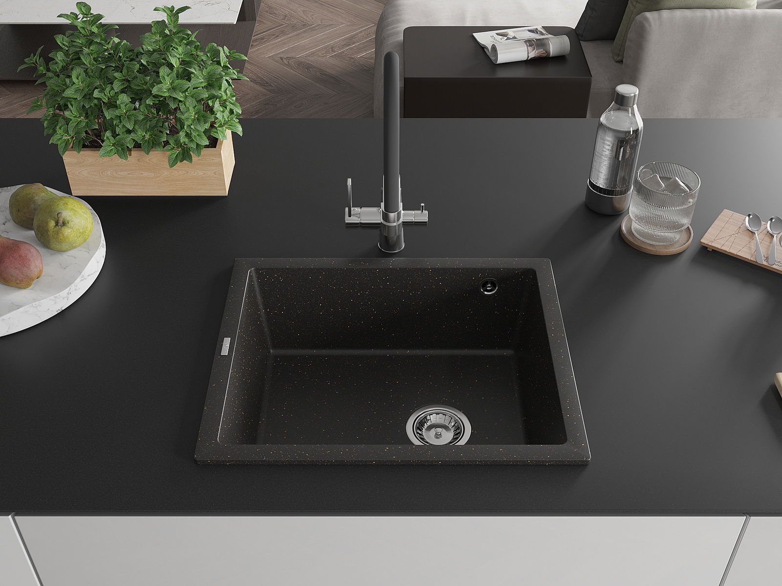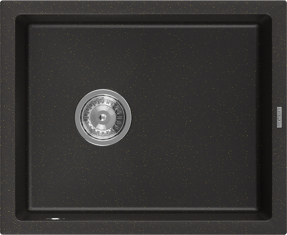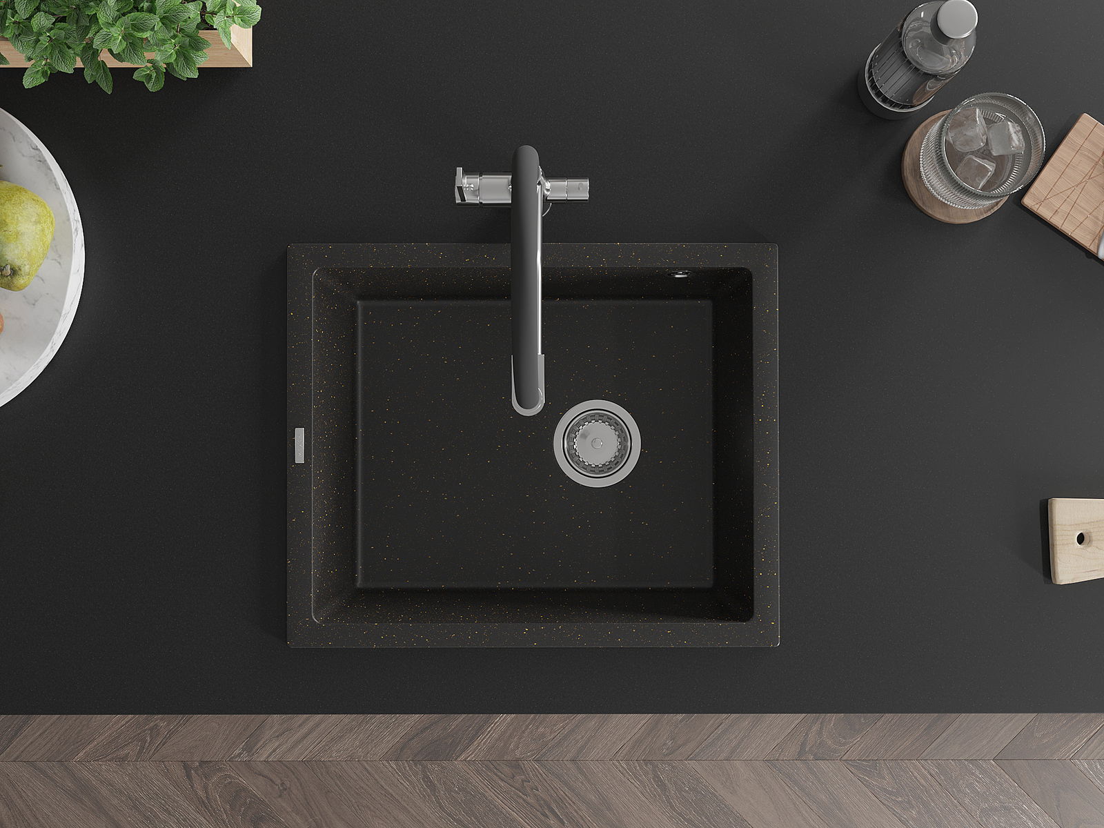 Mexen Pedro granitový kuchynský drez 1-komorový 560 x 460 mm, čierny/zlatý metalik, sifón chróm - 6508561000-75