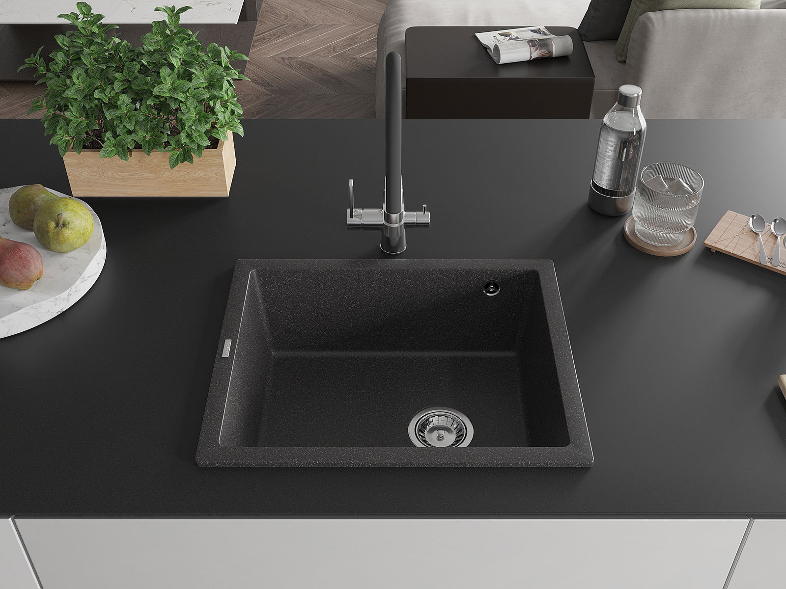 Povrch umývadla je odolný voči škvrnám a sfarbeniu, vďaka čomu sa ľahko čistí a zachováva si svoju farbu po dlhú dobu. Estetický a prakticky dopĺňajúci každú kuchyňu.