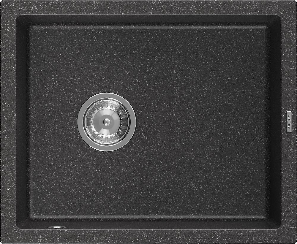 Mexen Pedro granitový kuchynský drez 1-komorový 560 x 460 mm, čierny bodkovaný, chrómový sifón - 6508561000-76