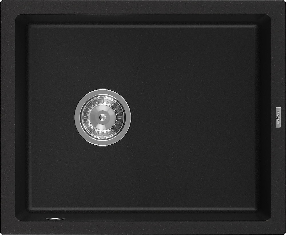 Mexen Pedro granitový kuchynský drez 1-komorový 560 x 460 mm, čierny, sifón chróm - 6508561000-77