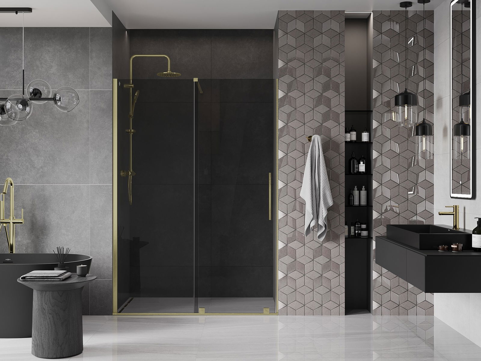 Praktický a pohodlný držiak je vyrobený z nehrdzavejúcej ocele. Módny tvar v kombinácii s povrchovou úpravou prispôsobenou farbe profilov dodáva celej konštrukcii moderný a štýlový vzhľad, podčiarkujúc estetiku každej kúpeľne.