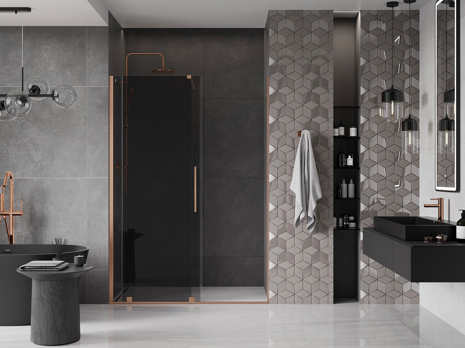 Mexen Velar posuvné sprchové dvere 140 cm, grafit, brúsená meď - 871-140-000-41-65