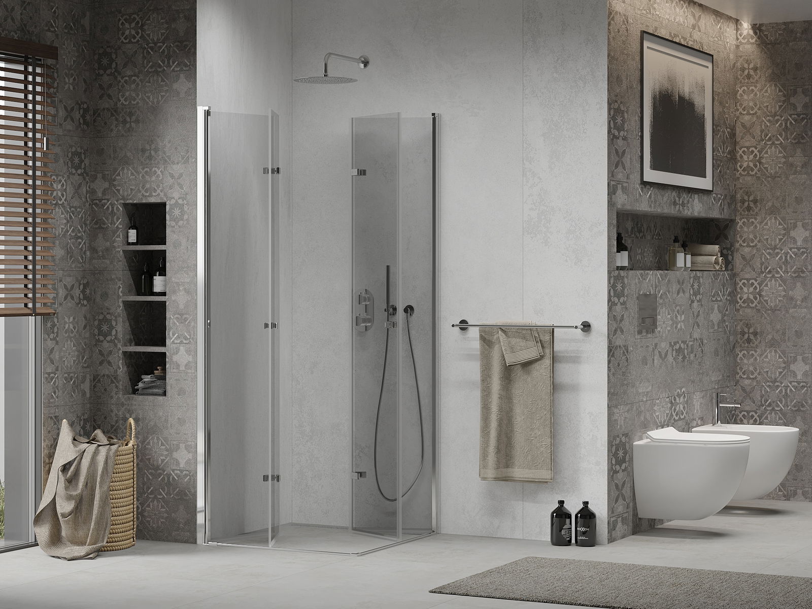 Vďaka možnosti zloženia dverí, ako smerom von, tak dovnútra, získavame oveľa viac priestoru, keď sa sprcha nepoužíva. Je to ideálne riešenie pre malé kúpeľne.