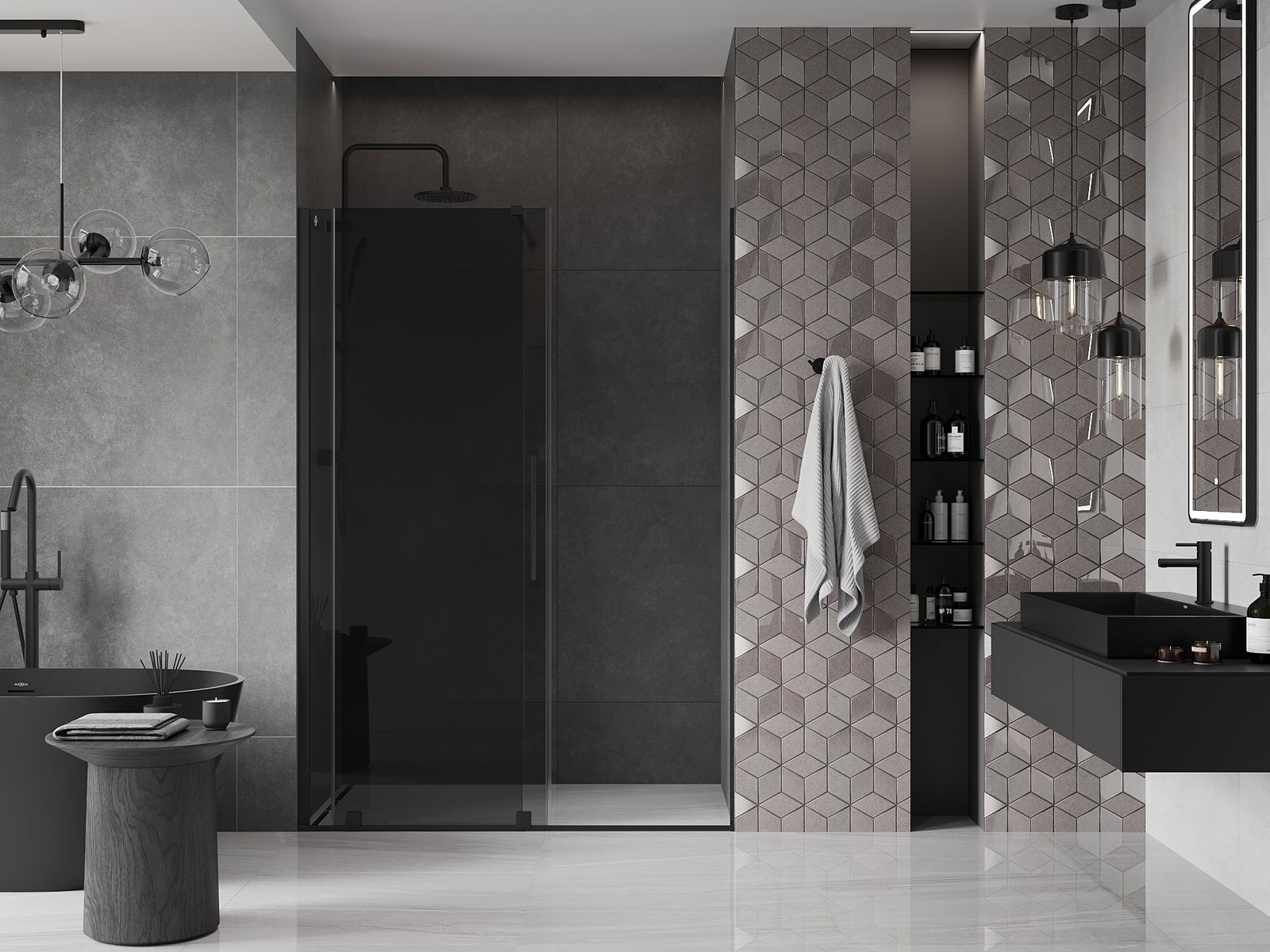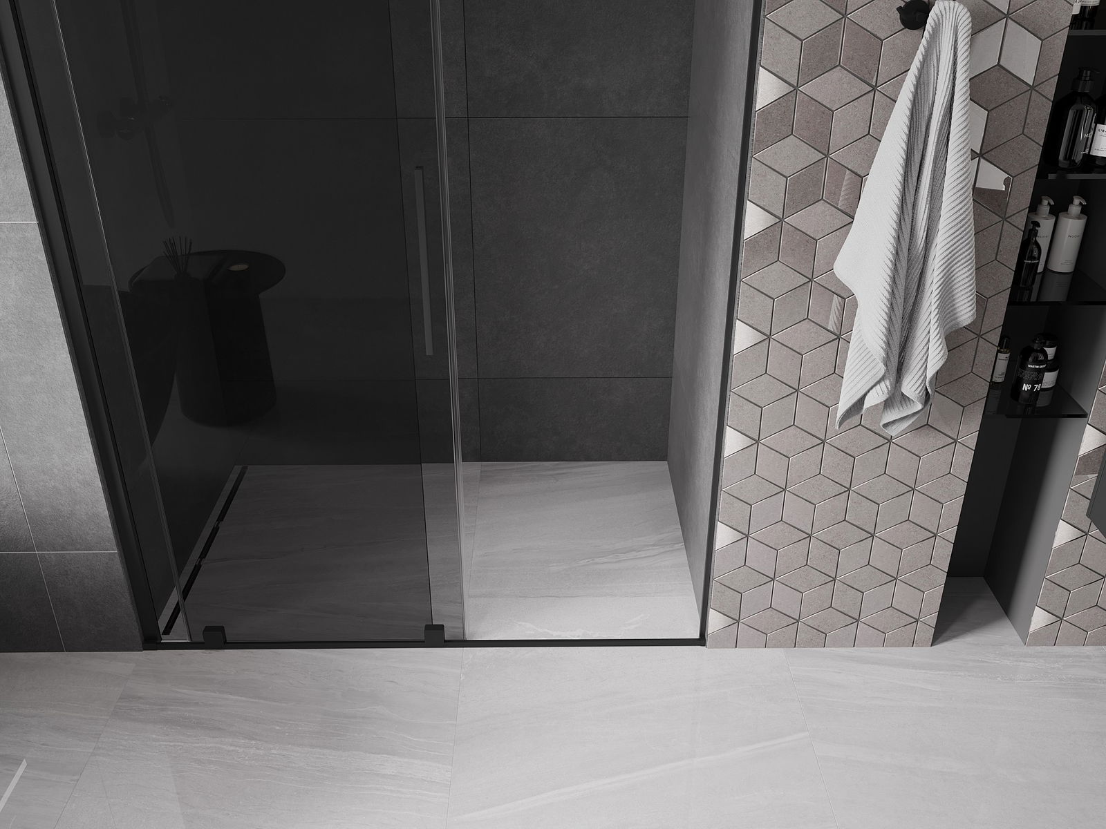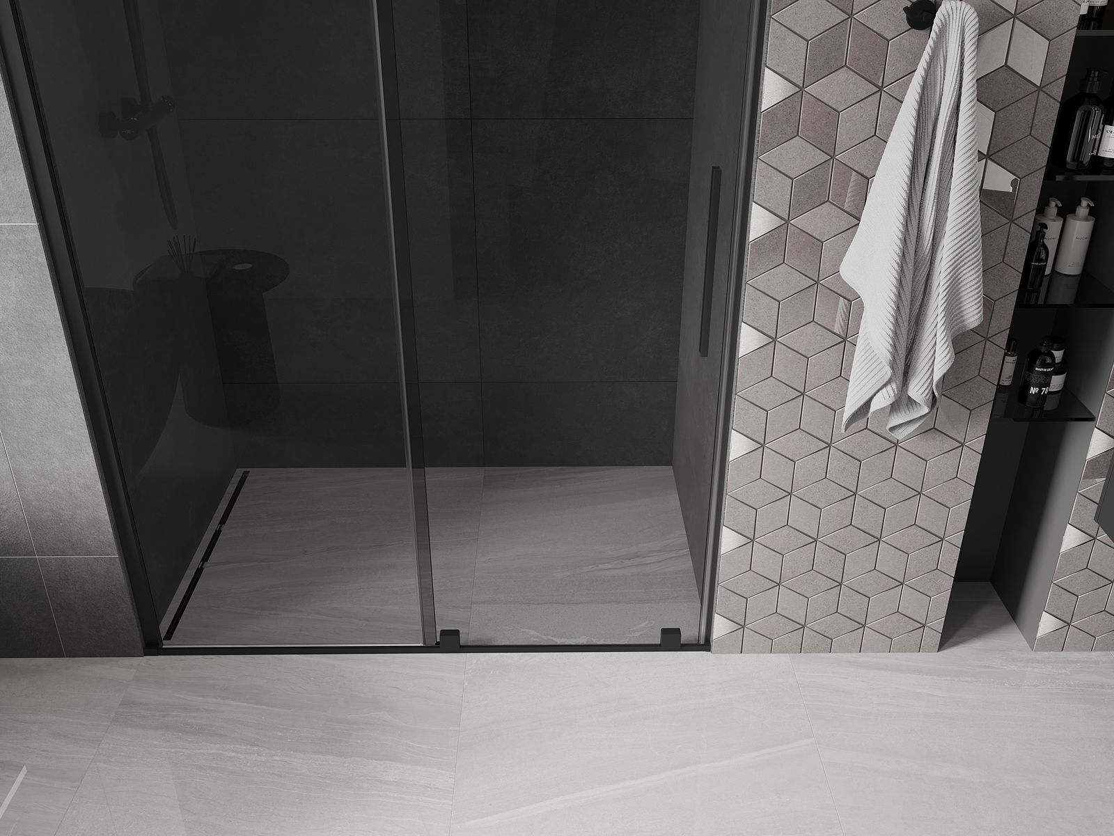 Praktický a pohodlný držiak je vyrobený z nehrdzavejúcej ocele. Módny tvar v kombinácii s povrchovou úpravou prispôsobenou farbe profilov dodáva celej konštrukcii moderný a štýlový vzhľad, podčiarkujúc estetiku každej kúpeľne.