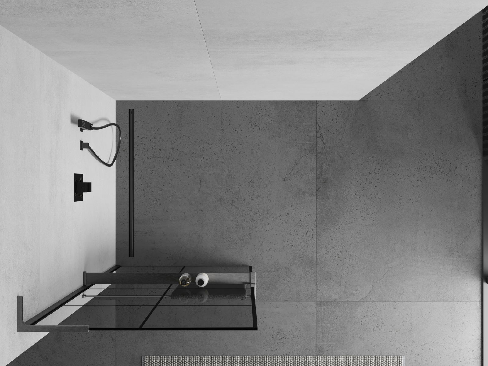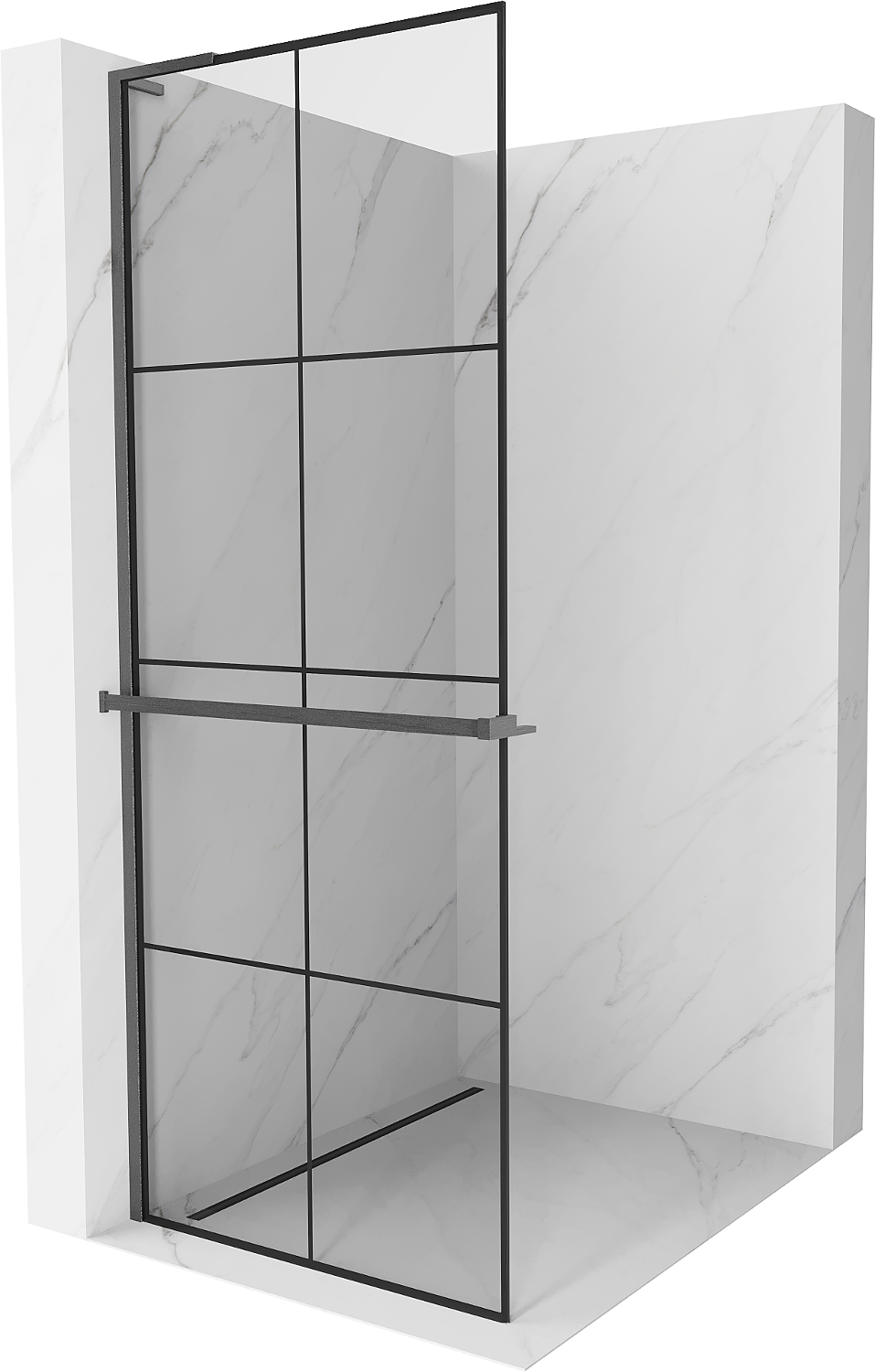 Mexen Kioto+ L sprchová stena s poličkou Walk-in 90 x 200 cm, čierna mriežka, gun gray brúsená - 800-090-123-66-77