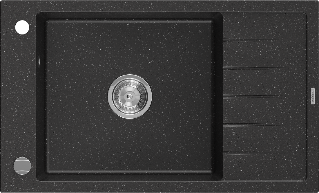 Mexen Elias granitový drez 1-komorový s odkvapkávačom 795 x 480 mm, čierny/strieborný metalický, sifón chróm - 6511791005-73