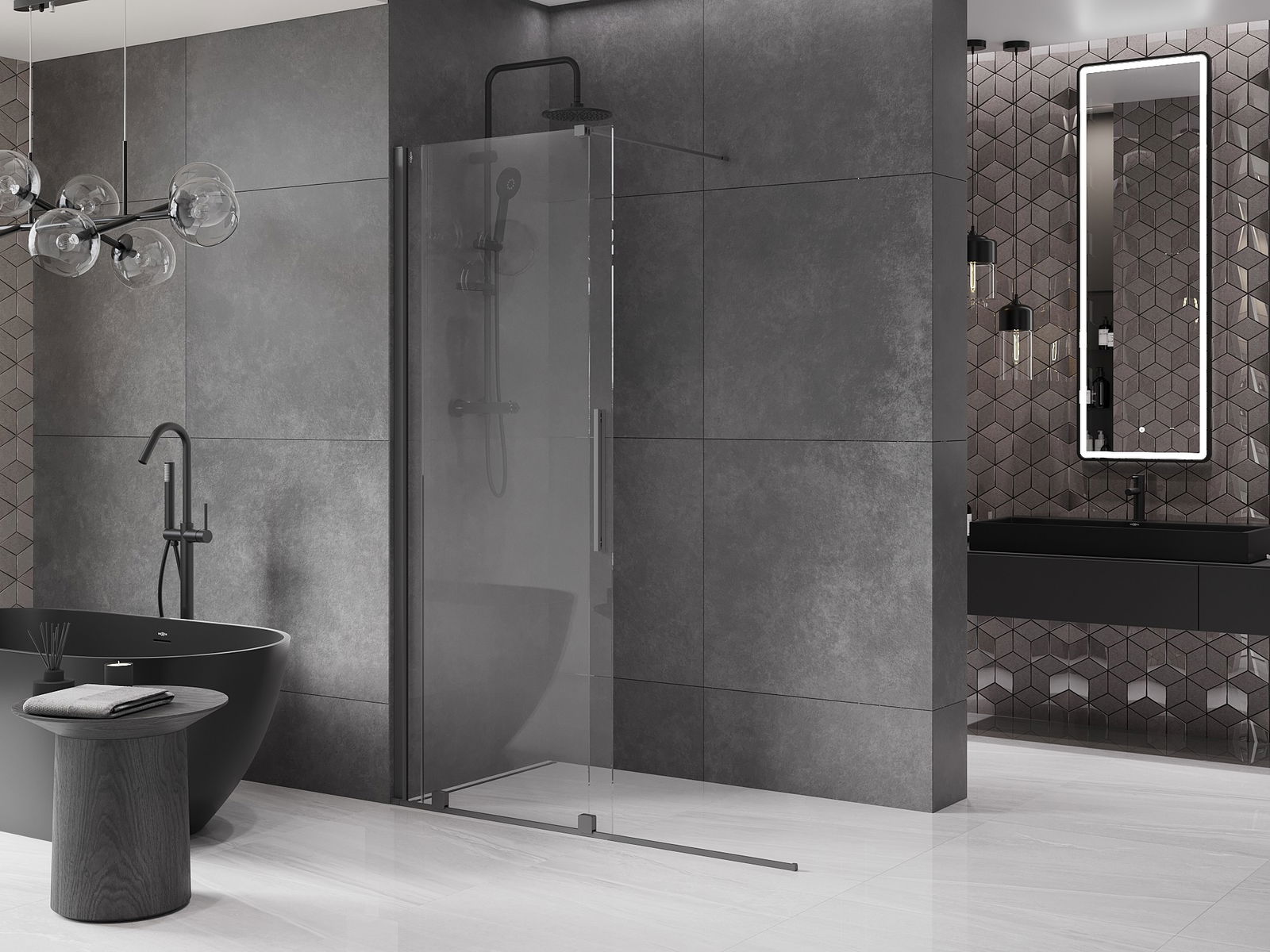Mexen Velar posuvná sprchová stena Walk-in 130 x 200 cm, priehľadná 8 mm, gun metal - 871-130-000-03-95