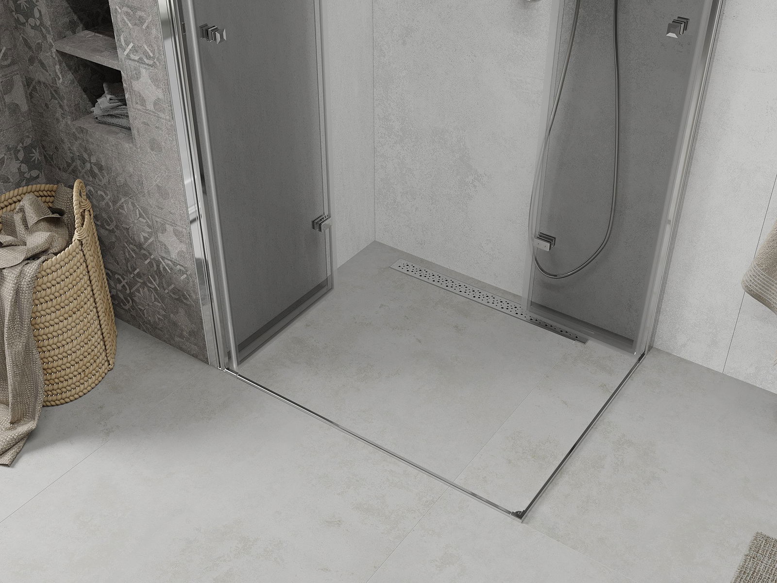 V závislosti od vašich potrieb je možné produkt namontovať na sprchovací podnos aj priamo na podlahe. Univerzálna montážna metóda vám umožňuje prispôsobiť produkt rôznym typom kúpeľní a nakonfigurovať priestor.