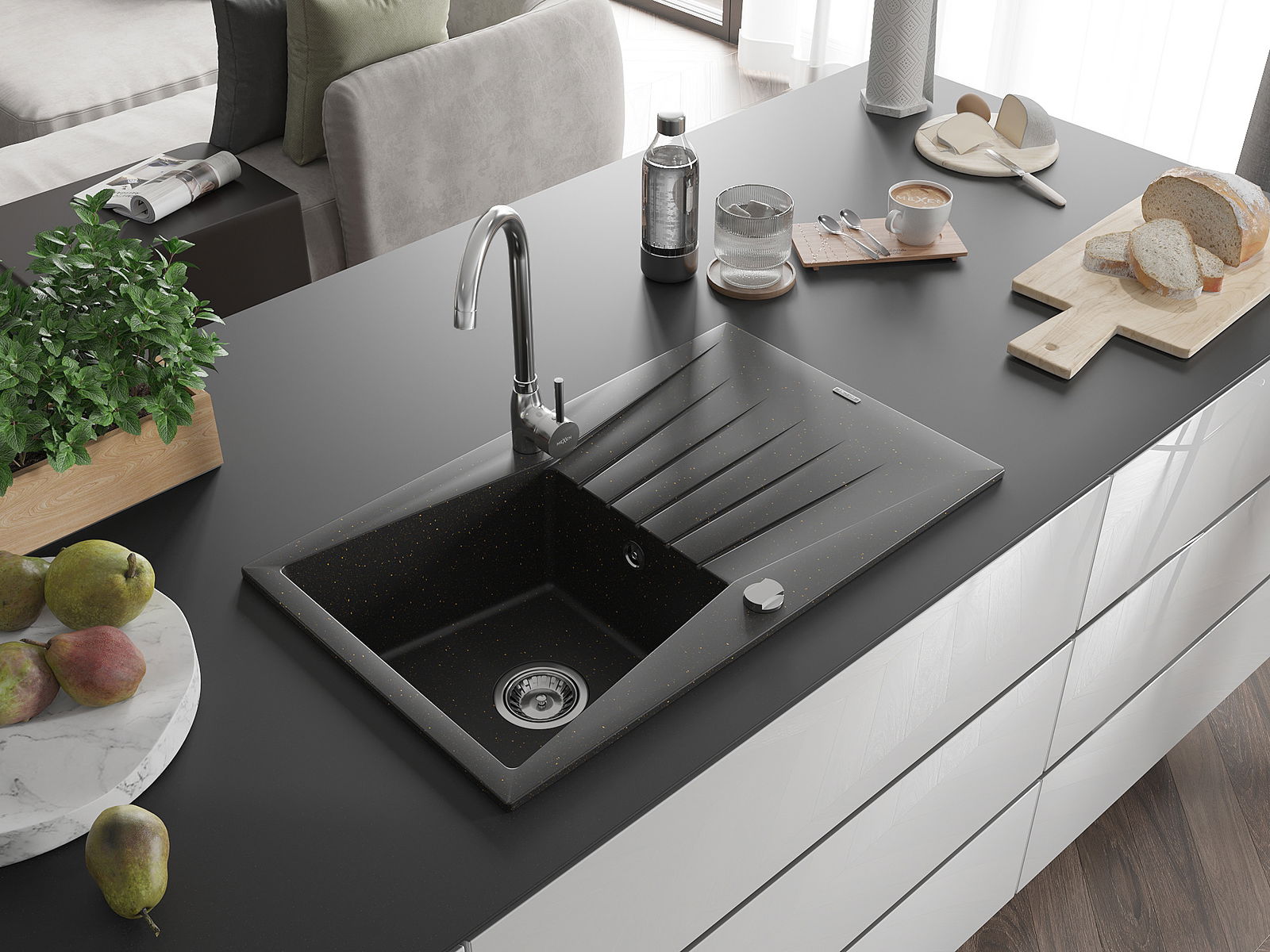 Drez bol vyrobený z vysoko kvalitného granitu. Predstavuje elegantný a predovšetkým praktický doplnok každej kuchyne, nezávisle od jej štýlu. Vysoká kvalita a trvácnosť granitu zaručujú mnohoročné používanie.