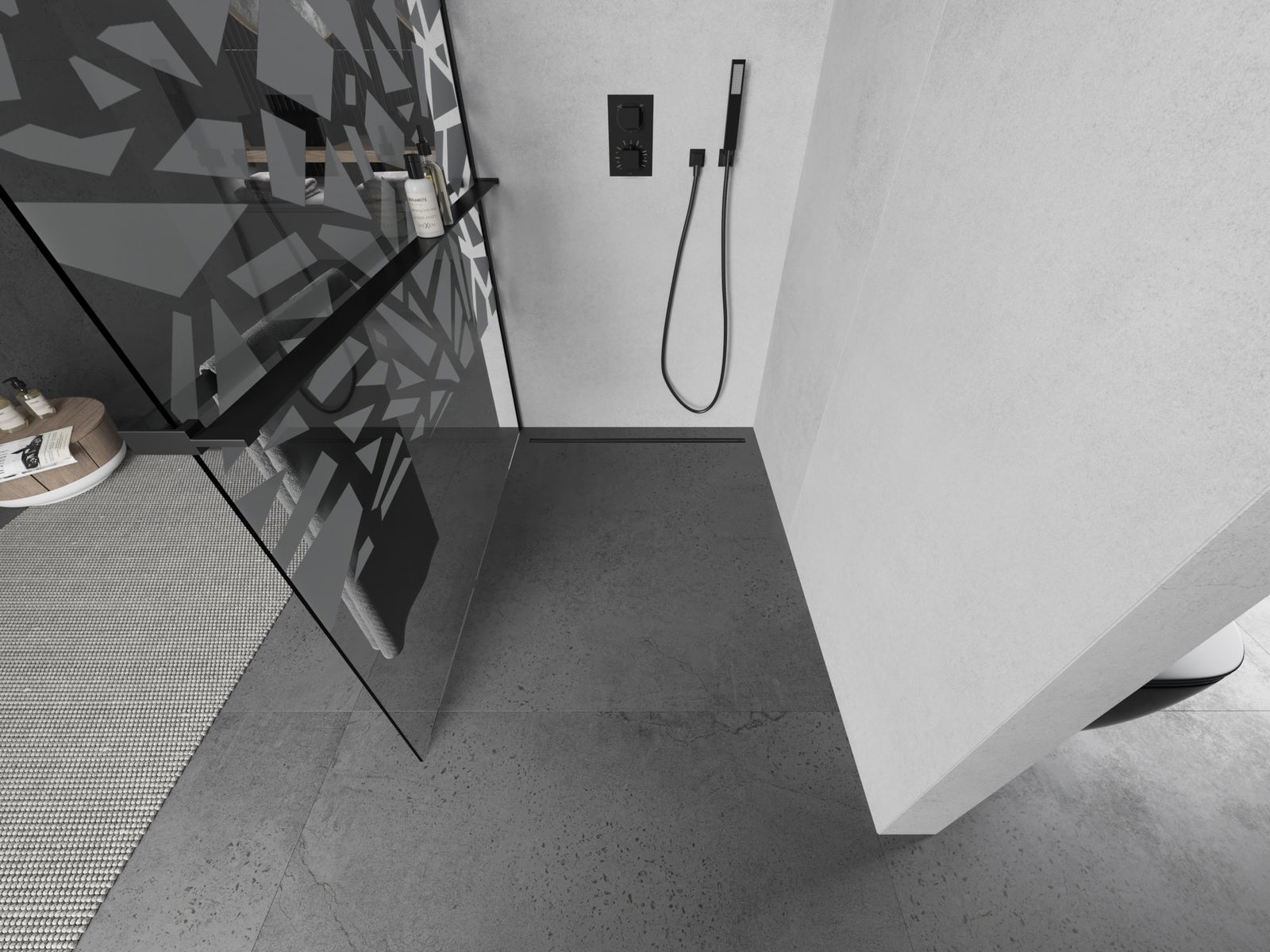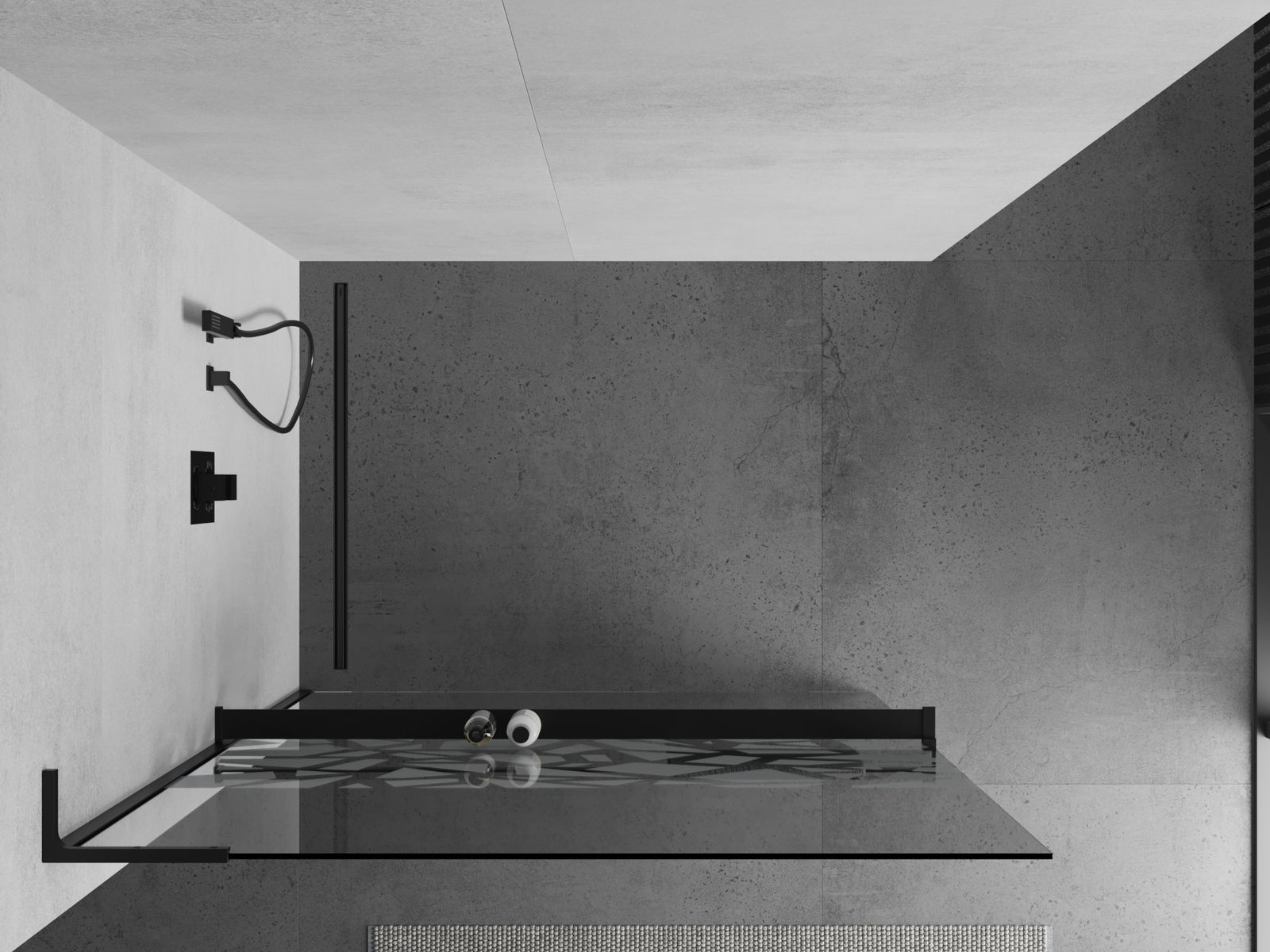 Mexen Kioto+ L sprchová stena s poličkou Walk-in 80 x 200 cm, biely vzor, čierna - 800-080-123-70-85