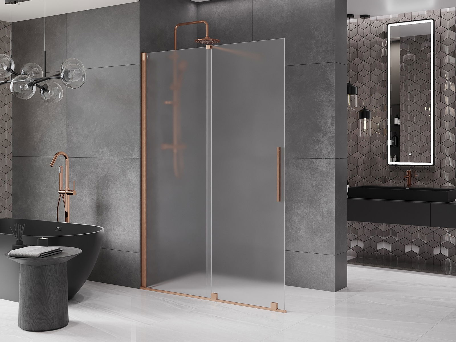 Mexen Velar posuvná sprchová stena Walk-in 140 x 200 cm, mrazené 8 mm, kartáčovaná meď - 871-140-000-33-65