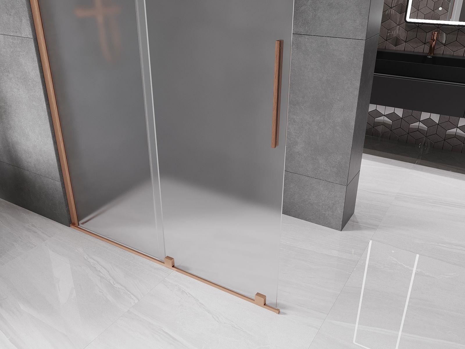 Mexen Velar zasúvacia sprchová stena Walk-in 150 x 200 cm, matné sklo 8 mm, brúsená meď - 871-150-000-33-65