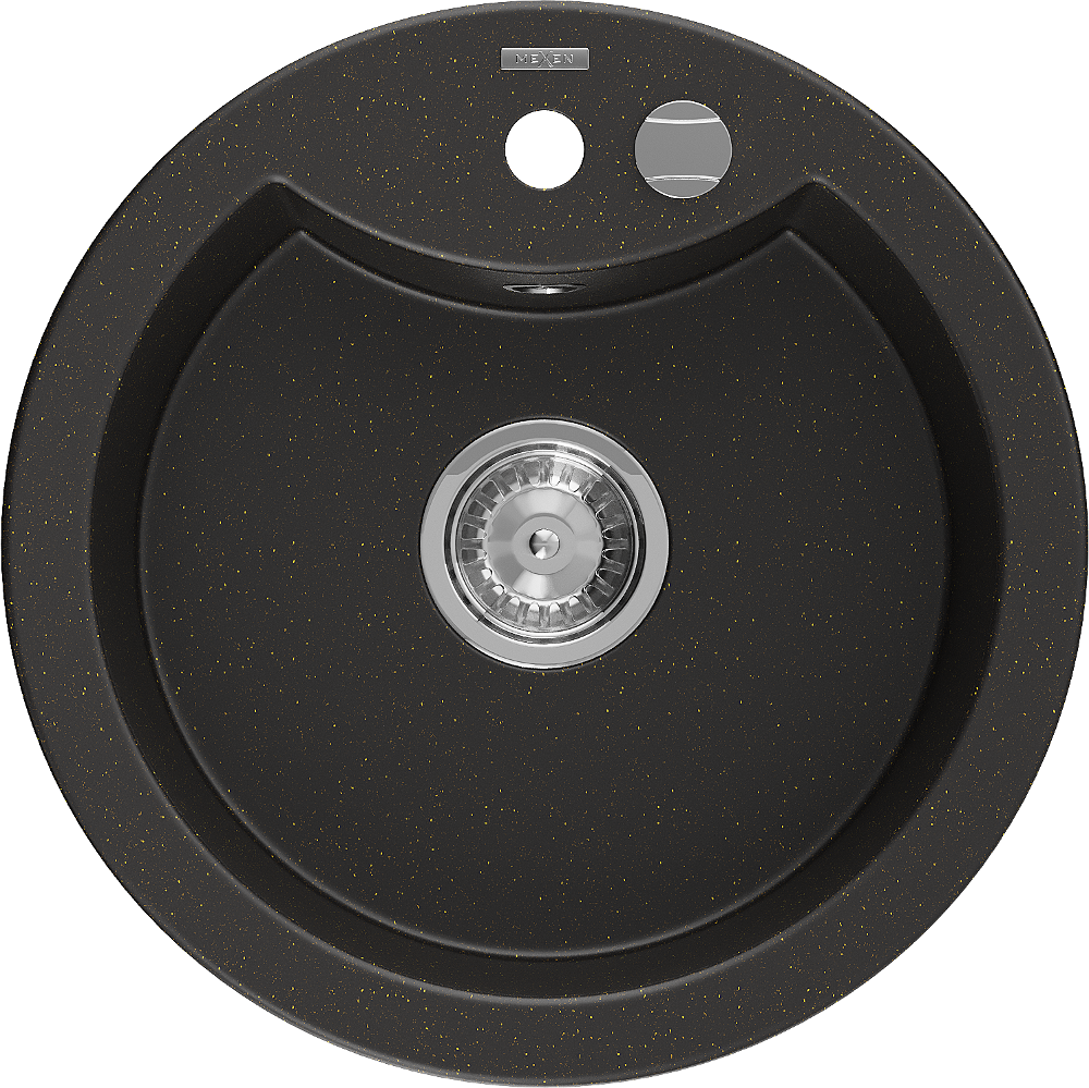 Mexen Diego žulový kuchynský drez 1-komorový 488 x 480 mm, čierny/zlatý metalik, chrómový sifón - 6512481000-75