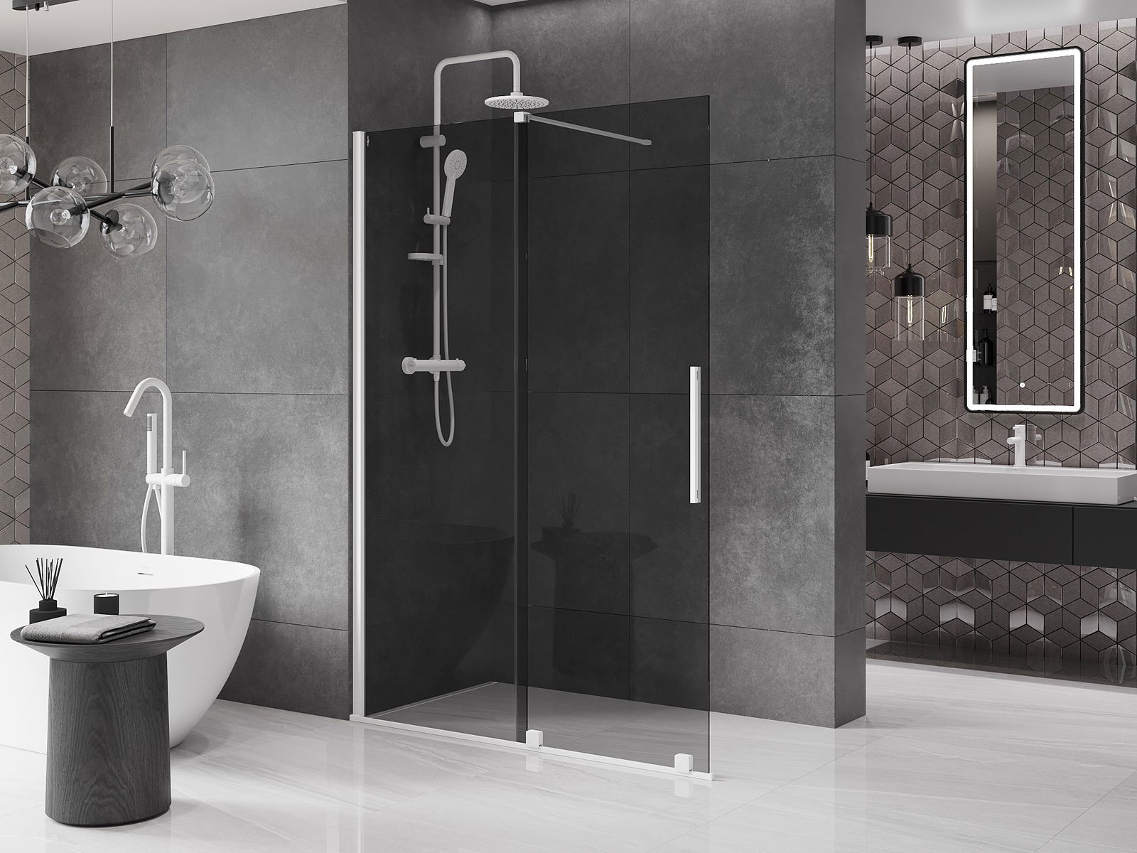 Mexen Velar posuvná sprchová stena Walk-in 140 x 200 cm, grafit 8 mm, biela - 871-140-000-43-20