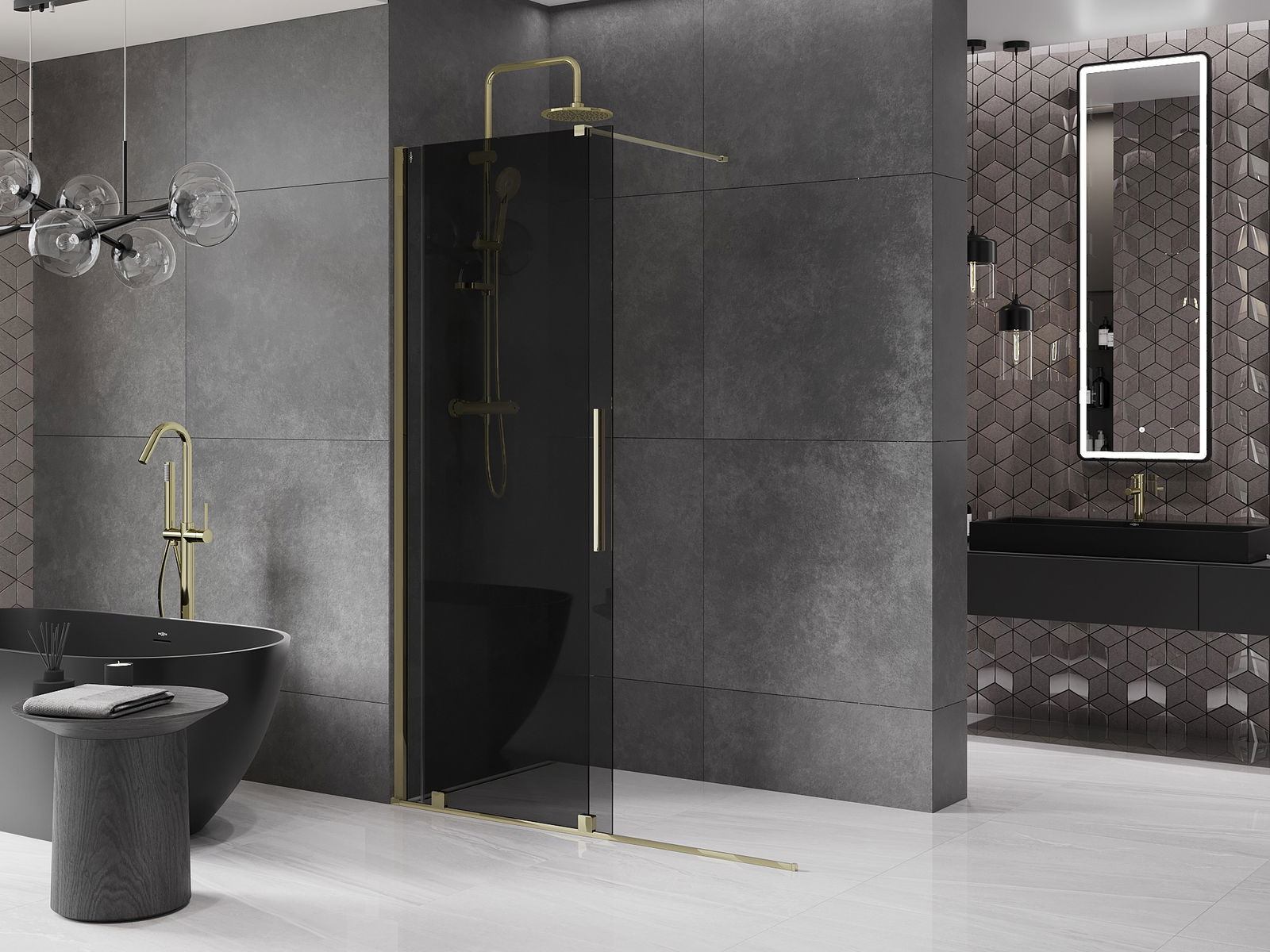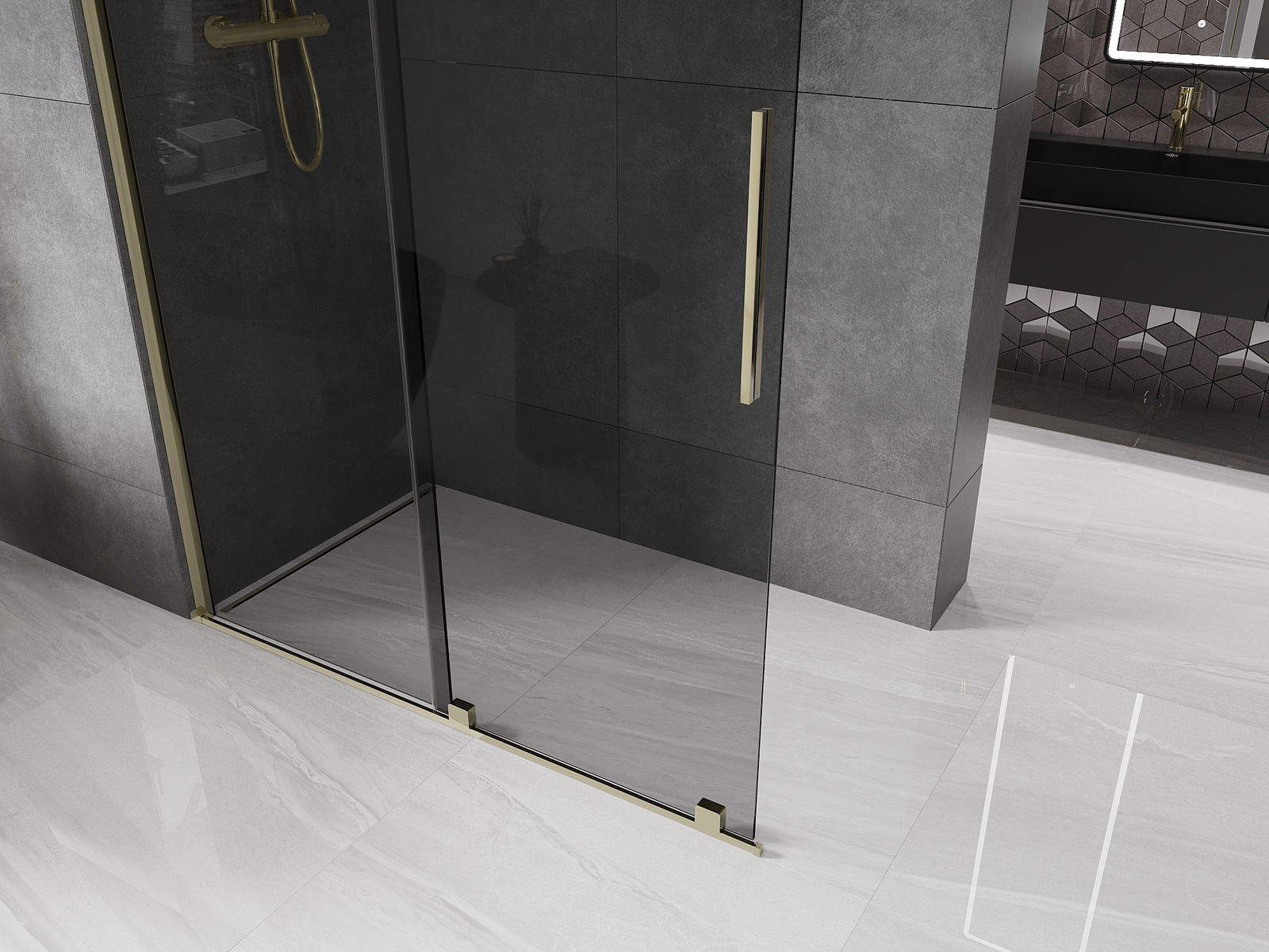 Mexen Velar posuvná sprchová stena Walk-in 130 x 200 cm, grafitová 8 mm, zlatá - 871-130-000-43-50