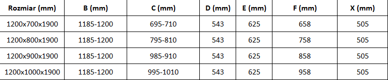 Rozmer: 120x90 cm (dvere 120 cm, stena 90 cm)