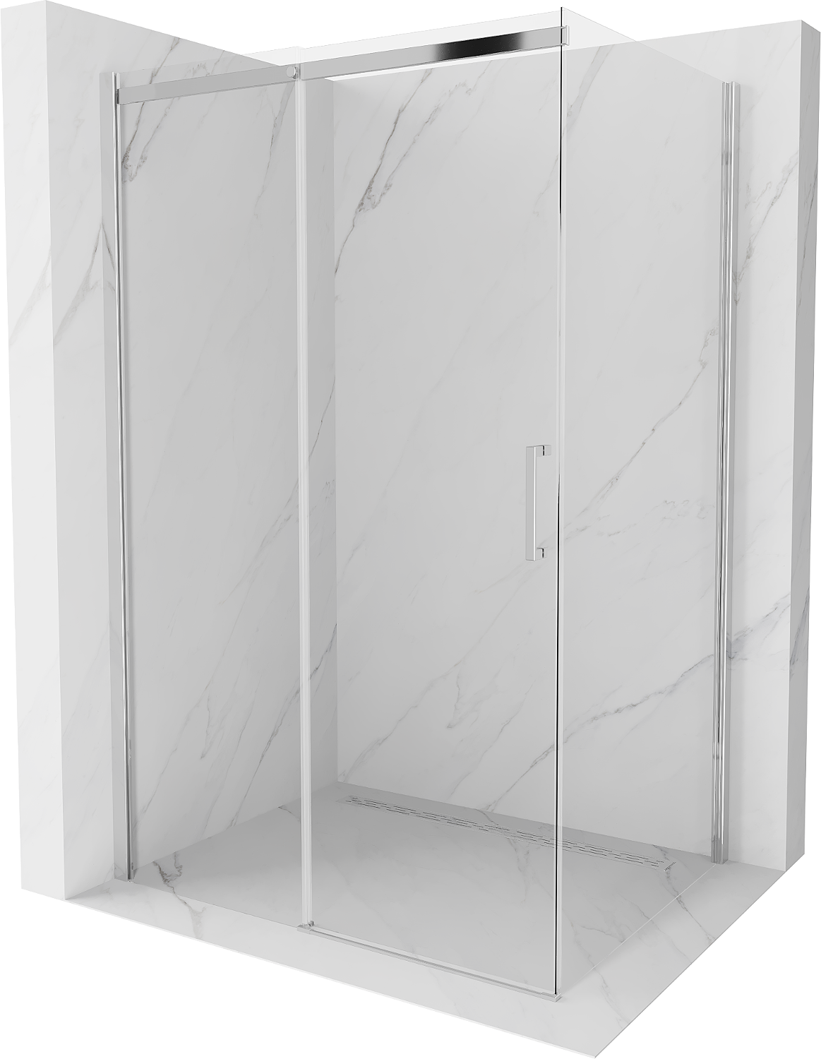 Posuvné dvere sa pohybujú po špeciálnych koľajniciach a nevyžadujú dodatočný priestor na otvorenie, preto sú ideálne pre menšie kúpeľne. Vďaka dvojitým kolieskam s kovovým telom je ich pohyb plynulý.