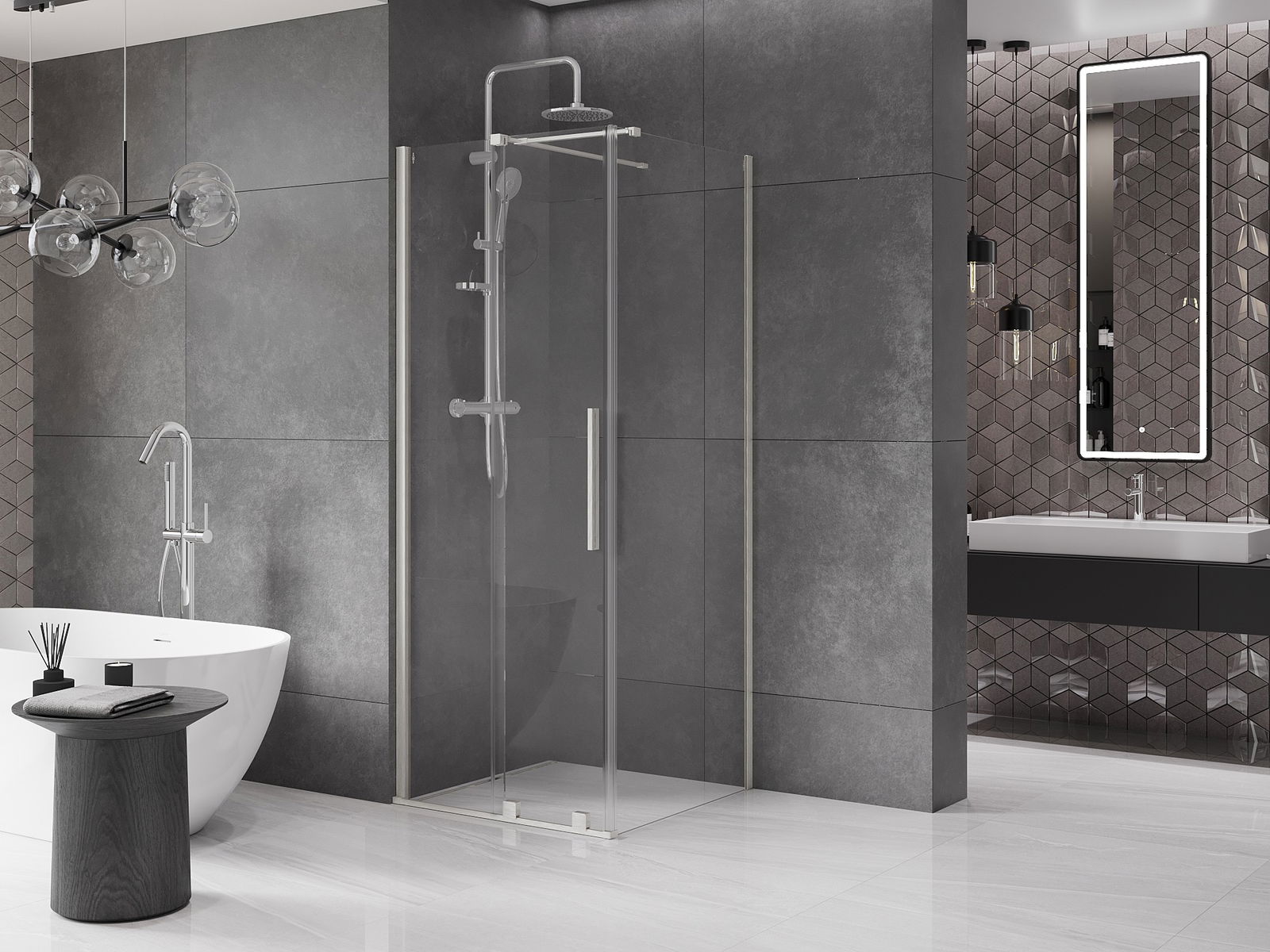 Veľkosť: 90x90 cm (dvere 90 cm, stena 90 cm)