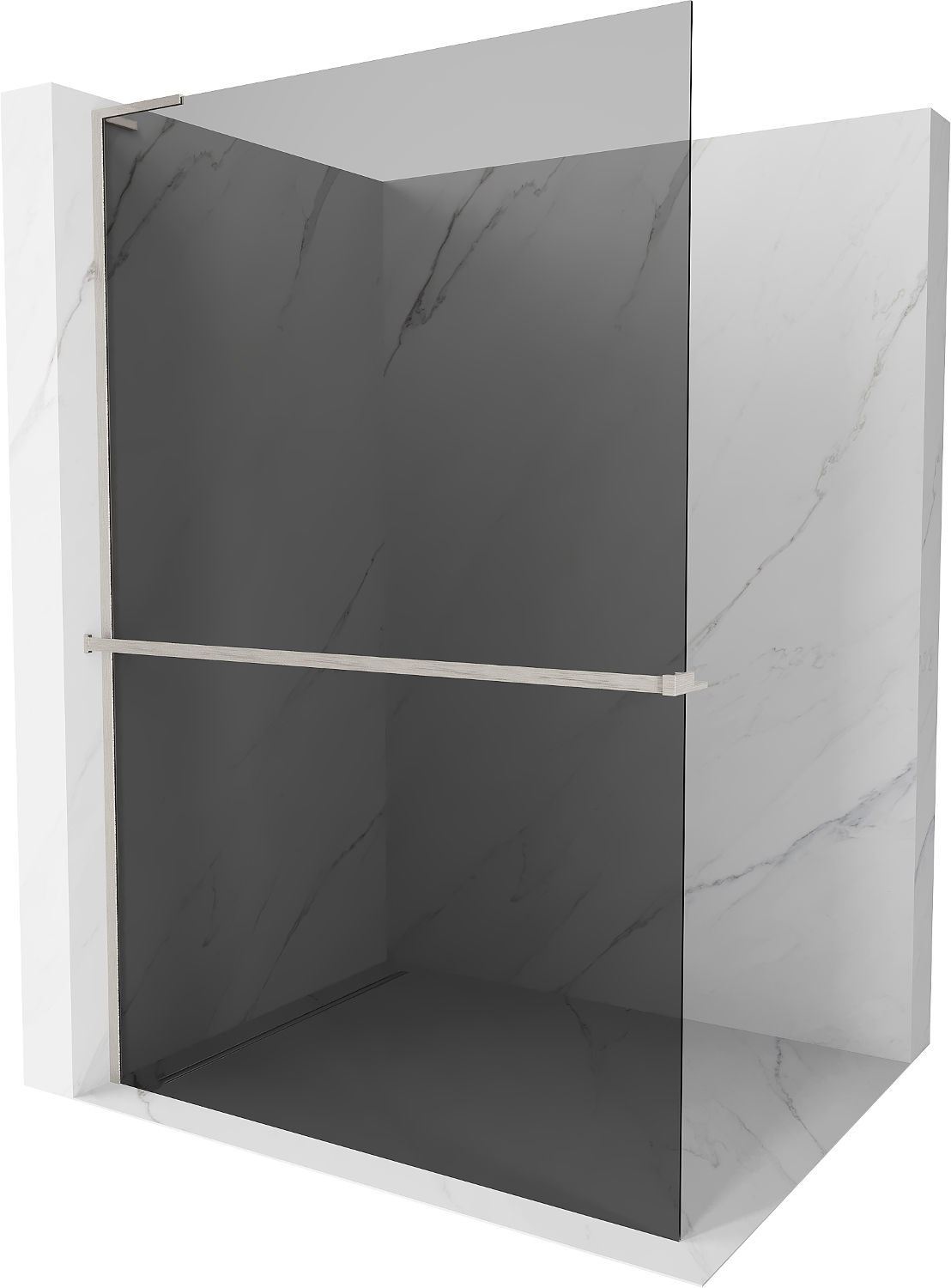 Mexen Kioto+ L sprchová stena s poličkou Walk-in 80 x 200 cm, grafitová, kartáčovaný nikel - 800-080-123-97-40