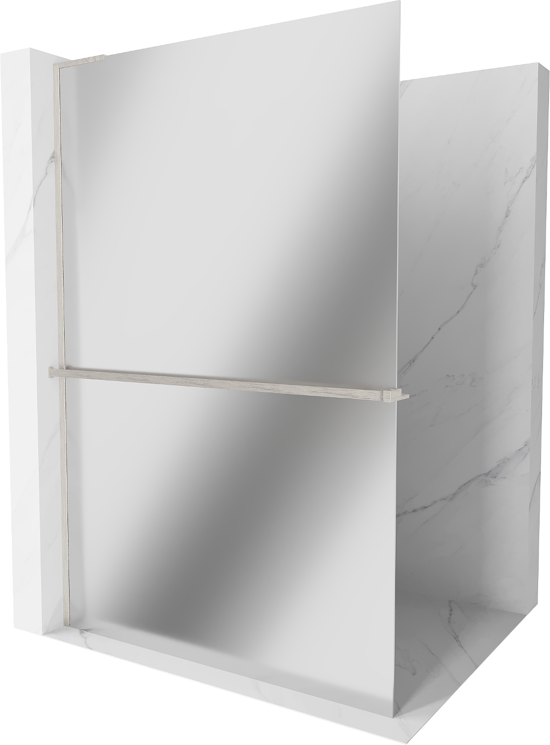 Mexen Kioto+ L sprchová stena s policou Walk-in 100 x 200 cm, zrkadlo, kartáčovaný nikel - 800-100-123-97-50