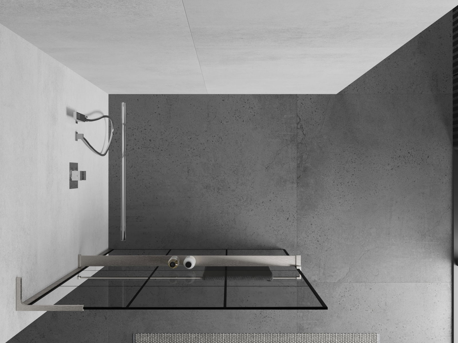 Mexen Kioto+ L sprchová stena s poličkou Walk-in 120 x 200 cm, čierna mriežka, brúsený nikel - 800-120-123-97-77