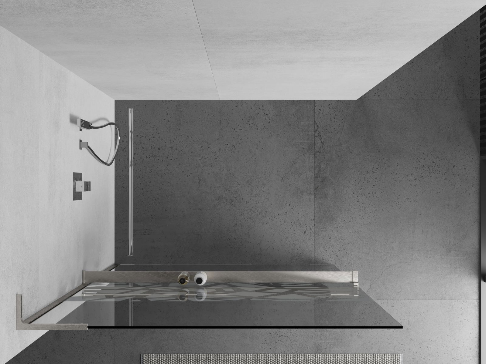 Polica na kozmetiku bola vyrobená z odolného hliníka. Povrchová úprava v farbe ostatných montážnych prvkov zabezpečuje, že polica tvorí elegantný celok s ostatnými časťami vybavenia. Moderný dizajn a pohodlné riešenie v jednom.