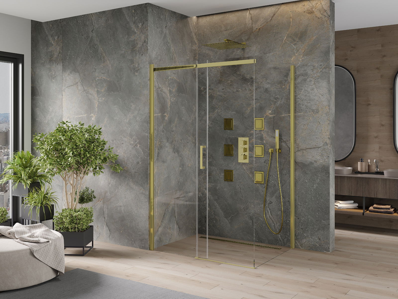 Mexen Omega sprchová kabína posuvná 100 x 80 cm, transparentná, zlatá - 825-100-080-50-00