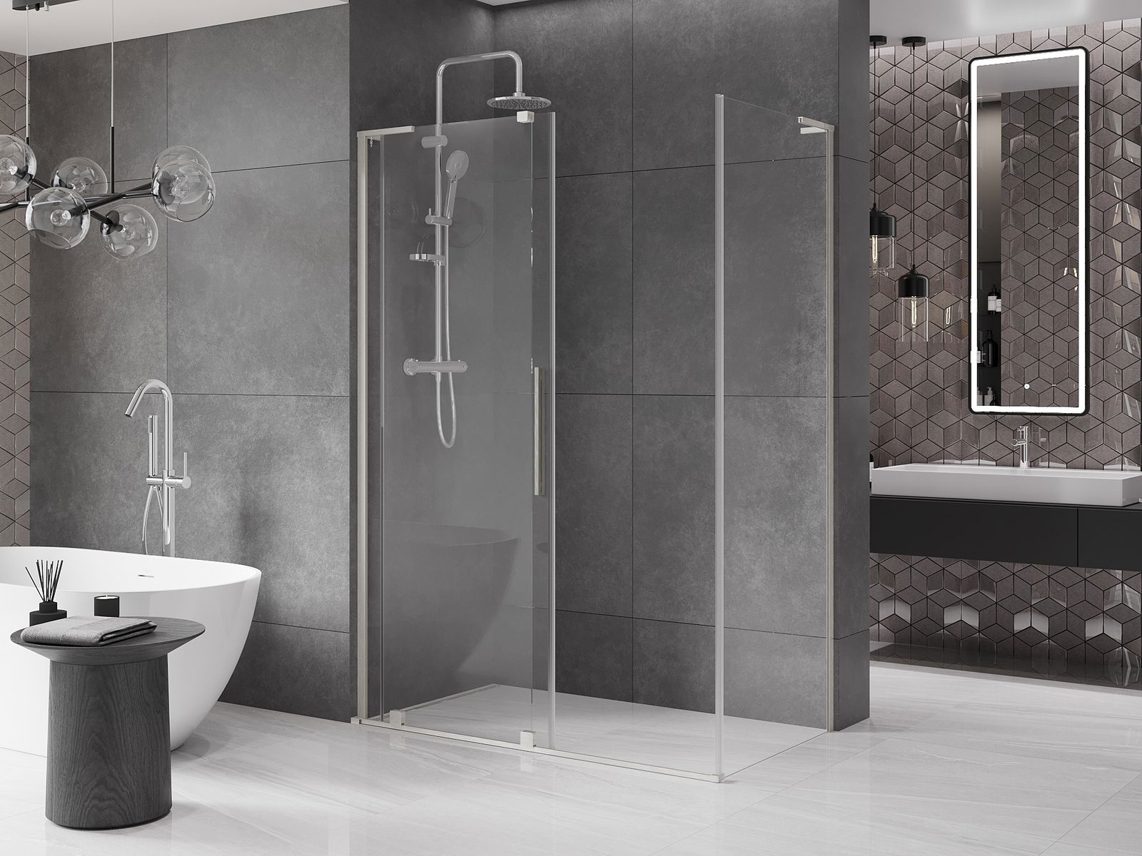 Produkt je možné podľa potreby namontovať ako na sprchovej vaničke, tak aj priamo na podlahe. Univerzálny spôsob montáže umožňuje prispôsobiť produkt rôznym typom kúpeľní a konfiguráciám priestoru.