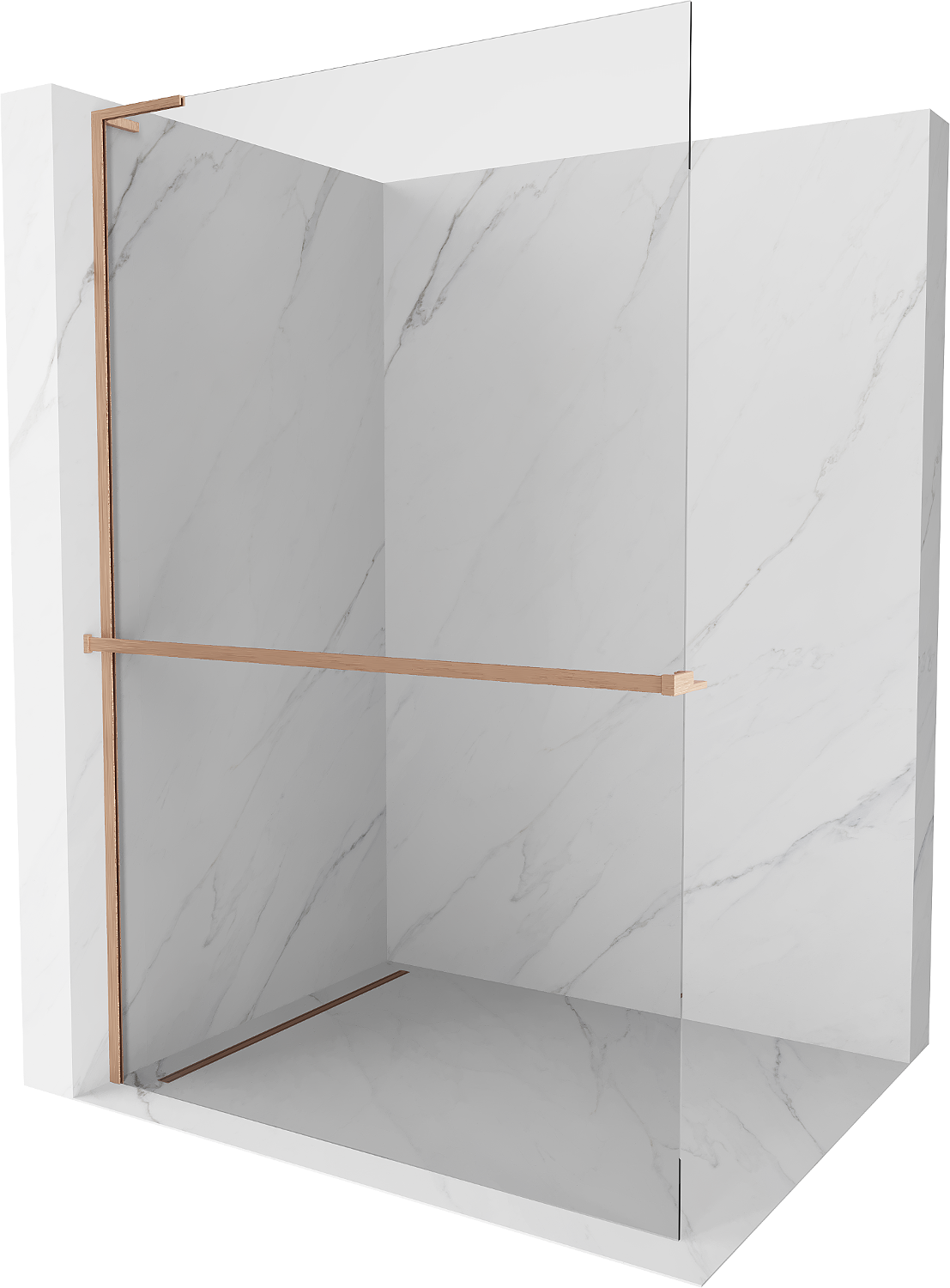 Mexen Kioto+ L sprchová stena s policou Walk-in 80 x 200 cm, transparentná, brúsená meď - 800-080-123-65-00