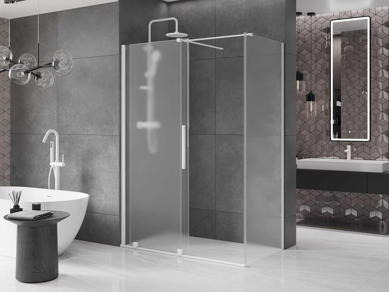 Mexen Velar posuvná sprchová kabína 160 x 100 cm, matné sklo, biela - 871-160-100-31-20