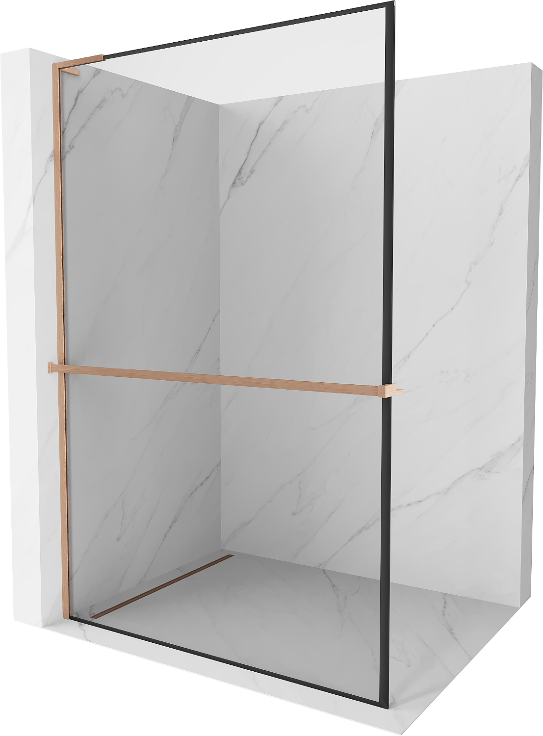Mexen Kioto+ L sprchová stena s poličkou Walk-in 90 x 200 cm, čierny rám, brúsená meď - 800-090-123-65-70