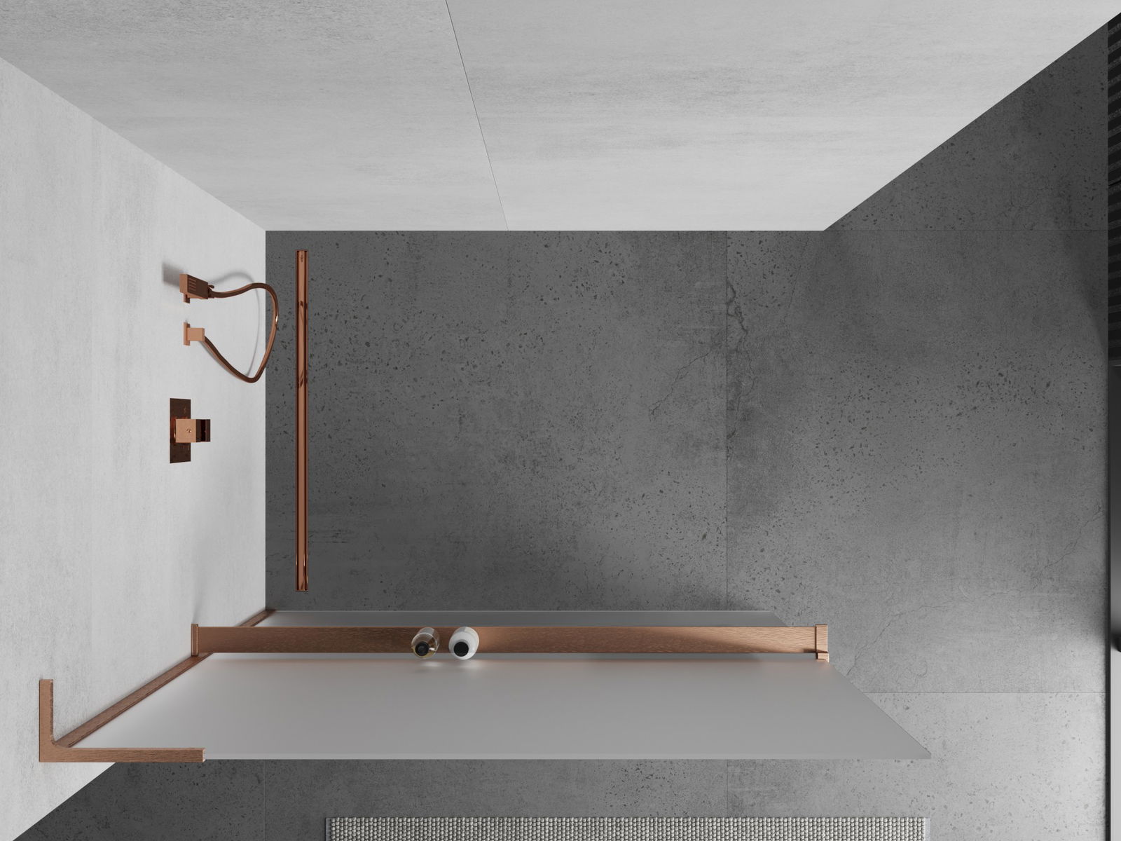 Mexen Kioto+ L sprchová stena s poličkou Walk-in 100 x 200 cm, mrazivý, brúsená meď - 800-100-123-65-30