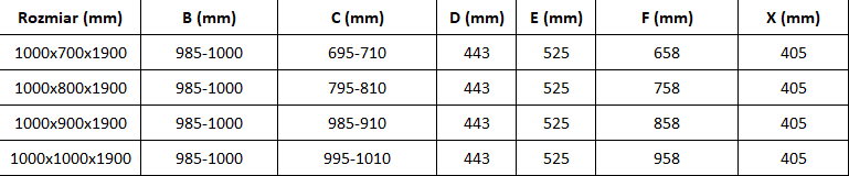 Veľkosť: 100x80 cm (dvere 100 cm, stena 80 cm)