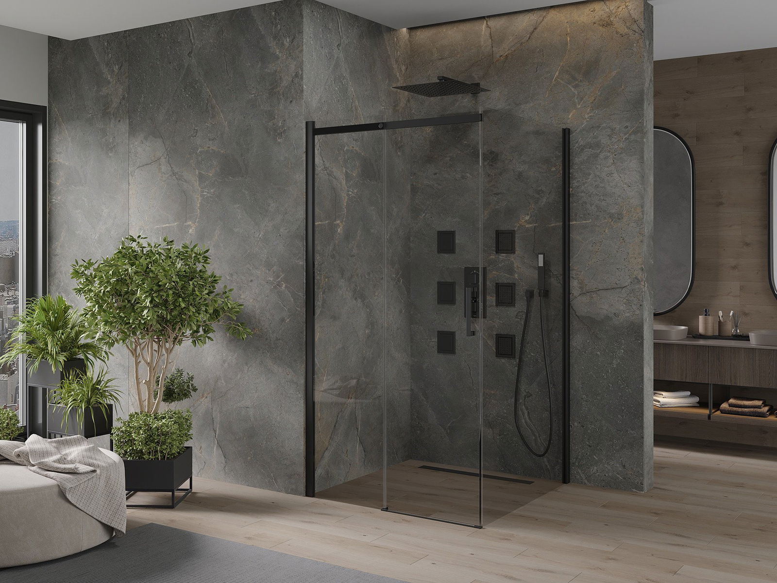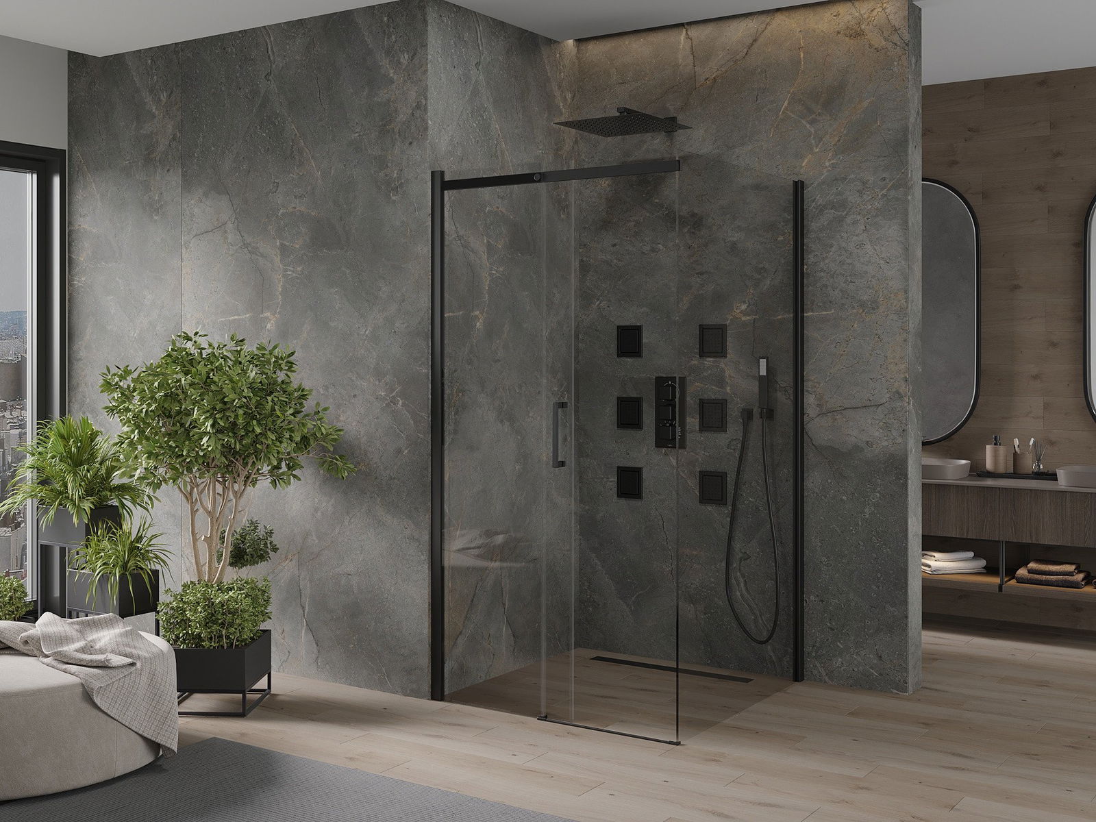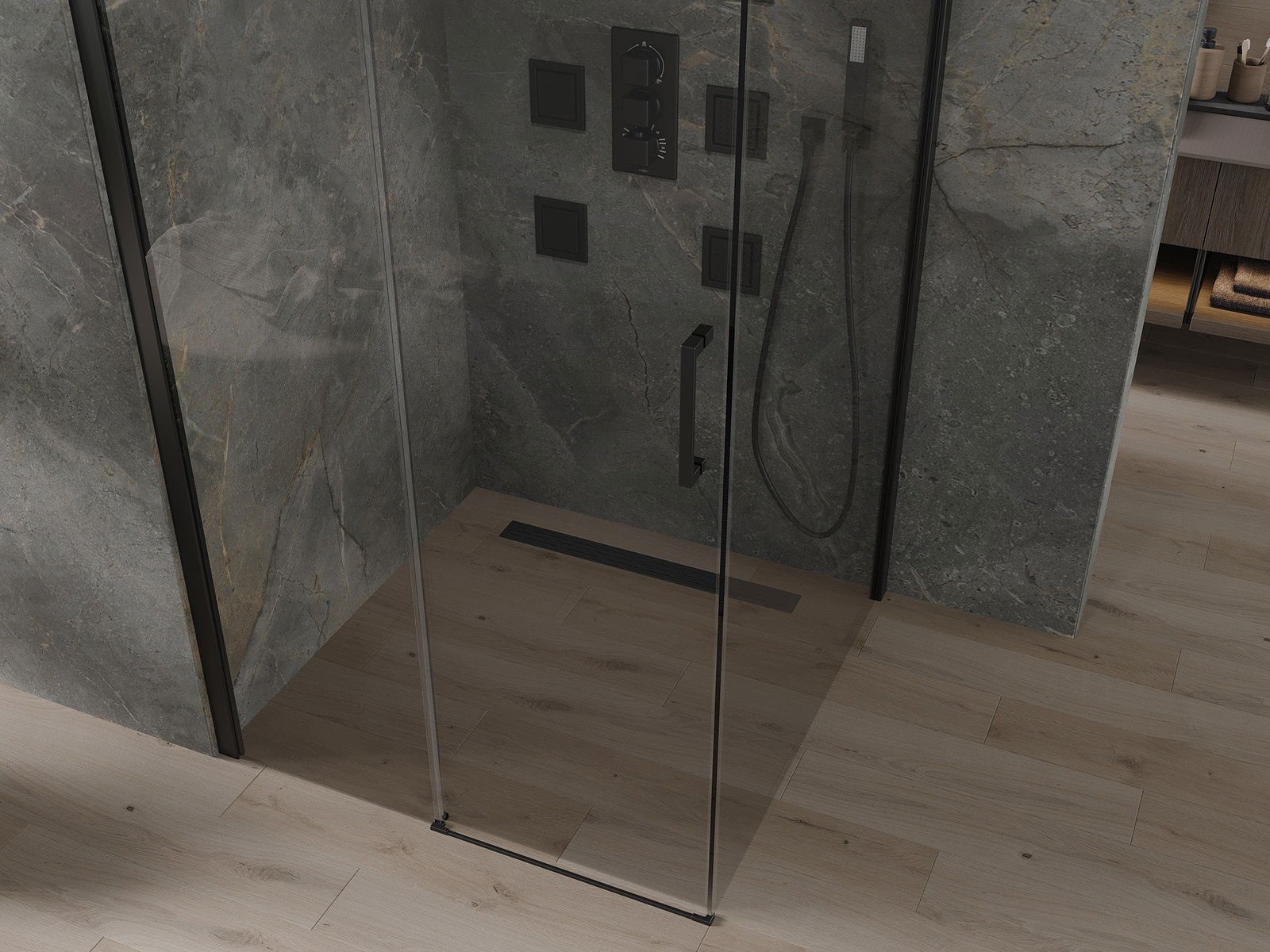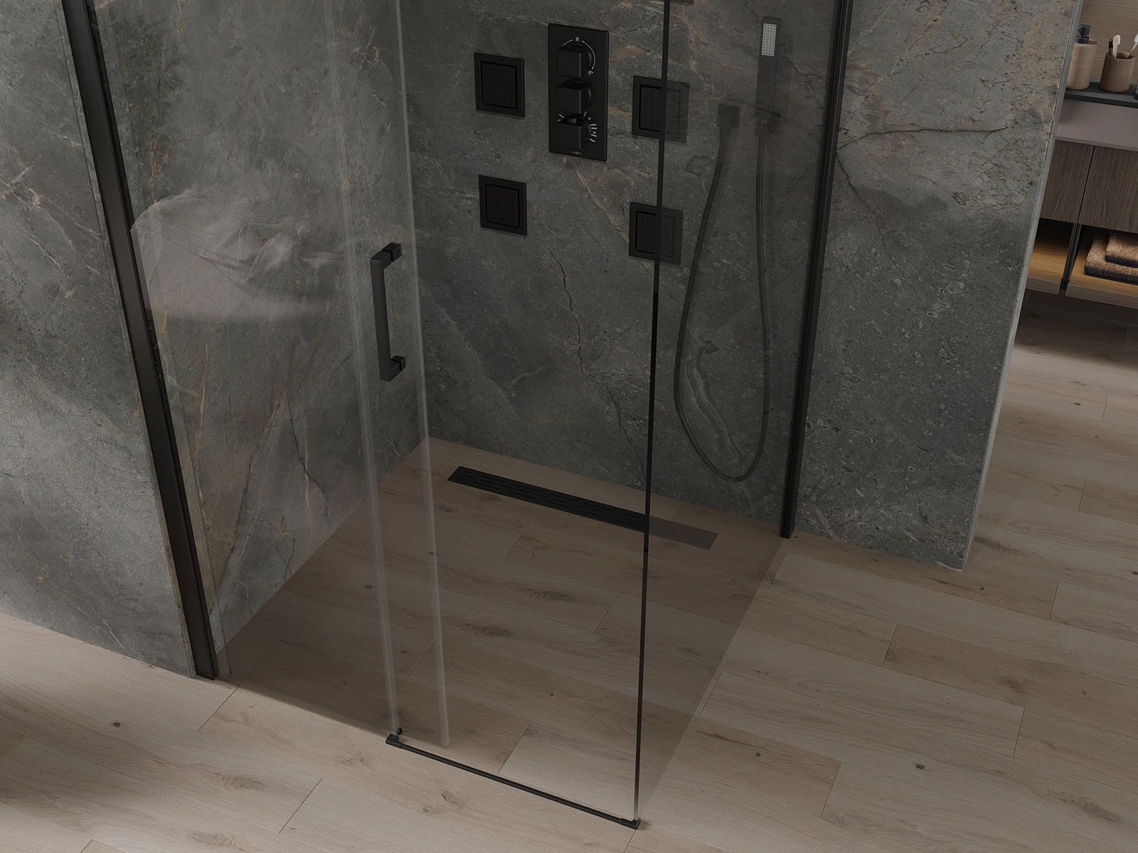 V závislosti od vašich potrieb je možné produkt namontovať na sprchovací podnos aj priamo na podlahe. Univerzálna montážna metóda vám umožňuje prispôsobiť produkt rôznym typom kúpeľní a nakonfigurovať priestor.