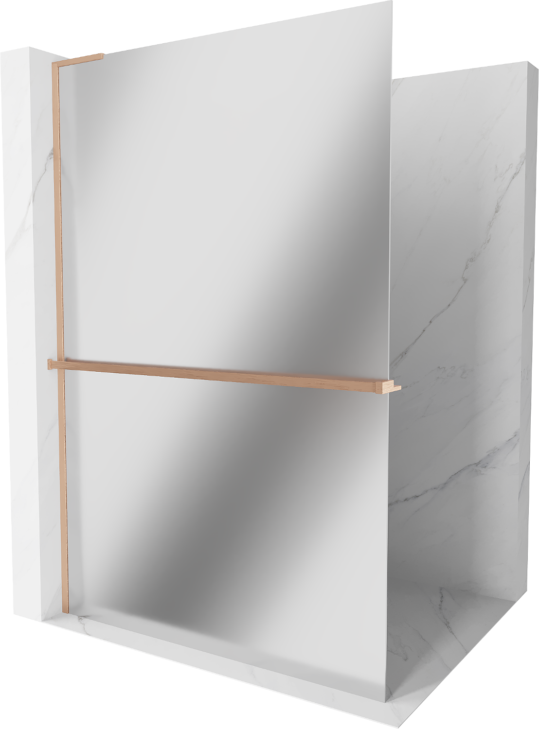 Mexen Kioto+ L sprchová stena s policou Walk-in 100 x 200 cm, zrkadlo, brúsená meď - 800-100-123-65-50
