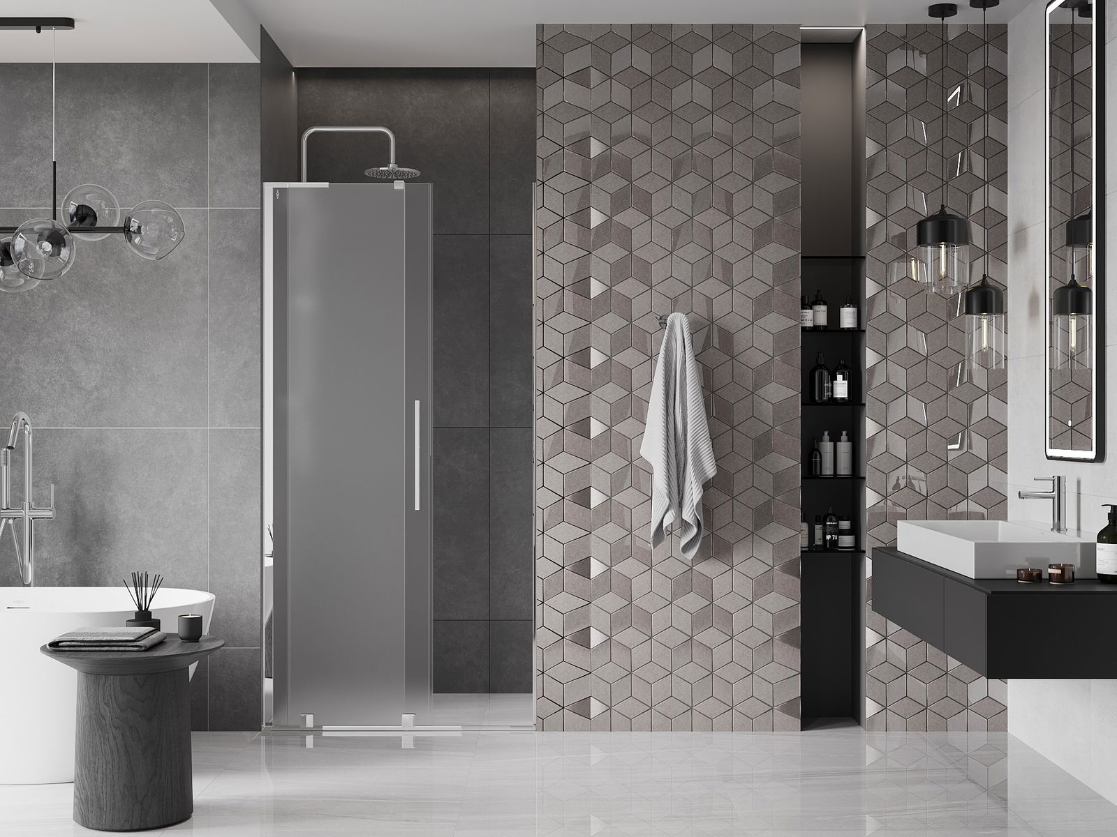 Praktický a pohodlný držiak je vyrobený z nehrdzavejúcej ocele. Módny tvar v kombinácii s povrchovou úpravou prispôsobenou farbe profilov dodáva celej konštrukcii moderný a štýlový vzhľad, podčiarkujúc estetiku každej kúpeľne.