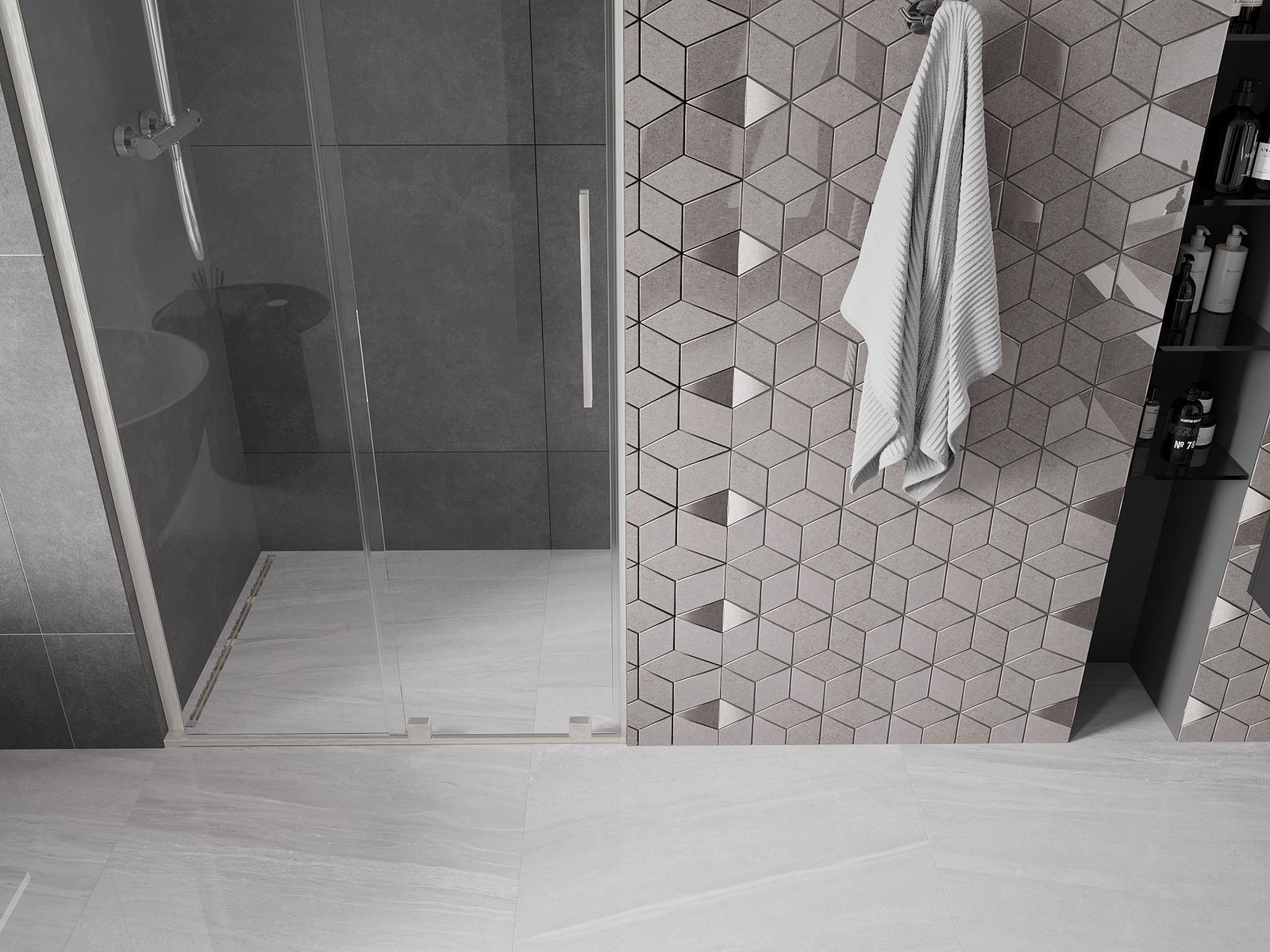 Praktický a pohodlný držiak je vyrobený z nehrdzavejúcej ocele. Módny tvar v kombinácii s povrchovou úpravou prispôsobenou farbe profilov dodáva celej konštrukcii moderný a štýlový vzhľad, podčiarkujúc estetiku každej kúpeľne.