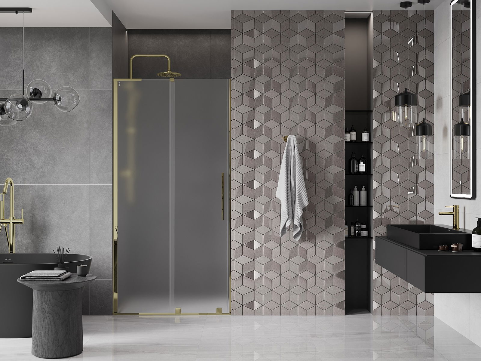 Praktický a pohodlný držiak je vyrobený z nehrdzavejúcej ocele. Módny tvar v kombinácii s povrchovou úpravou prispôsobenou farbe profilov dodáva celej konštrukcii moderný a štýlový vzhľad, podčiarkujúc estetiku každej kúpeľne.