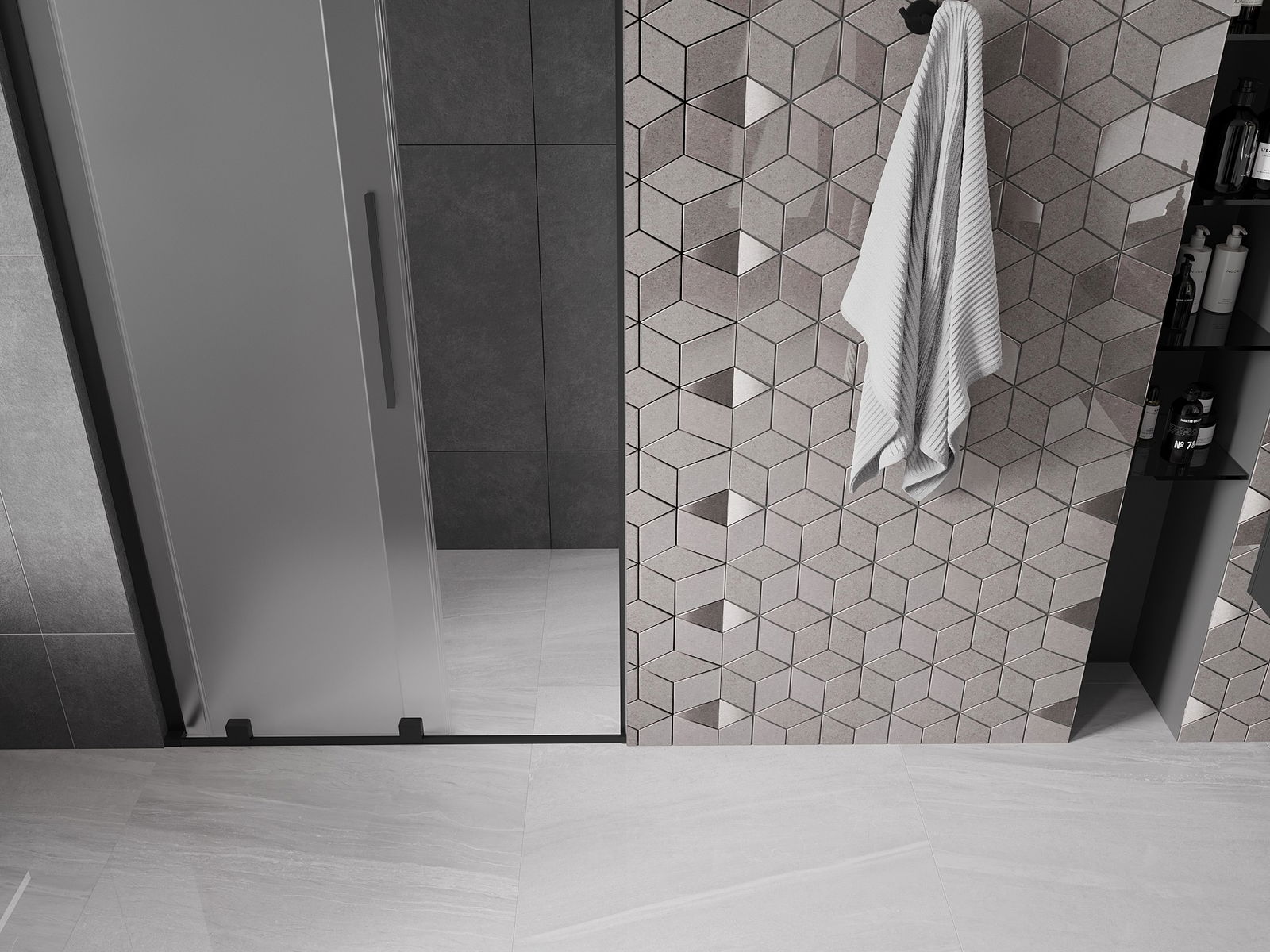 Praktický a pohodlný držiak je vyrobený z nehrdzavejúcej ocele. Módny tvar v kombinácii s povrchovou úpravou prispôsobenou farbe profilov dodáva celej konštrukcii moderný a štýlový vzhľad, podčiarkujúc estetiku každej kúpeľne.