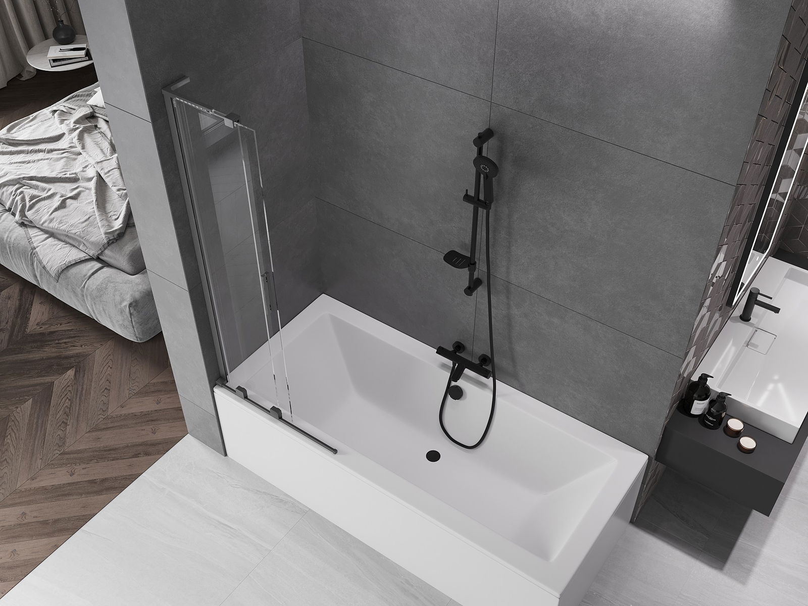 Vďaka použitiu univerzálneho montážneho systému môže byť priečka namontovaná na pravej alebo ľavej strane, podľa potreby. Týmto spôsobom môžete ľahko navrhnúť sprchu prispôsobenú priestoru kúpeľne.
