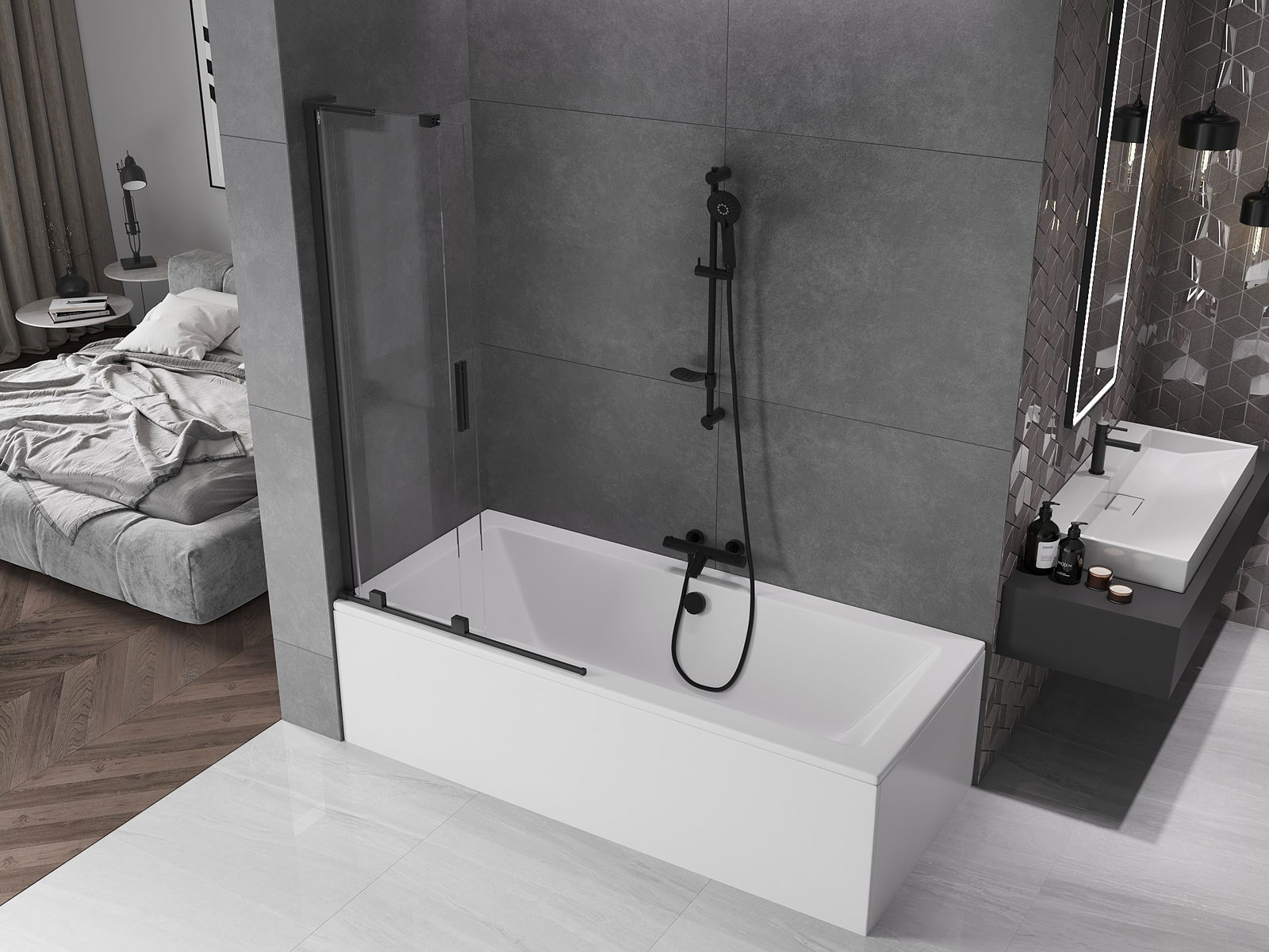 Mexen Velar L vaneľové paraván 2-krídlové posuvné 90 x 150 cm, transparentné, čierne - 896-090-003-01-70