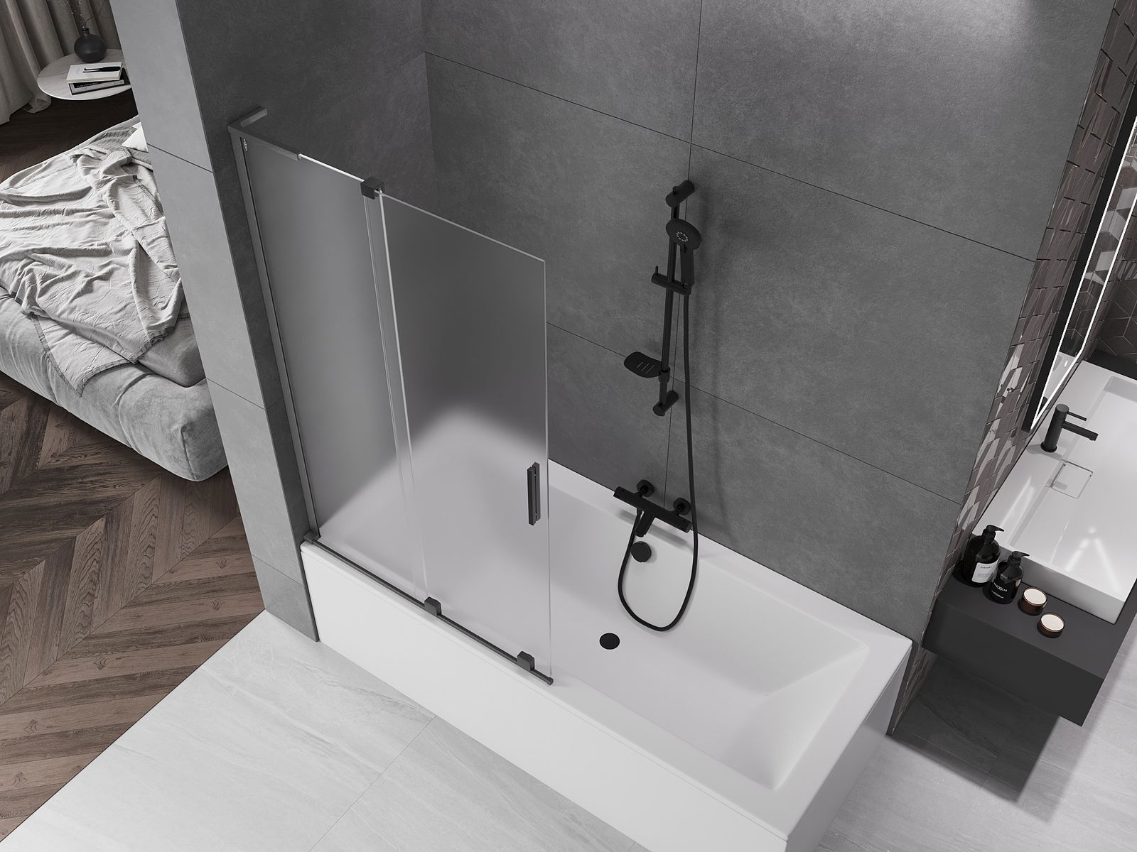 Vďaka použitiu univerzálneho montážneho systému môže byť priečka namontovaná na pravej alebo ľavej strane, podľa potreby. Týmto spôsobom môžete ľahko navrhnúť sprchu prispôsobenú priestoru kúpeľne.