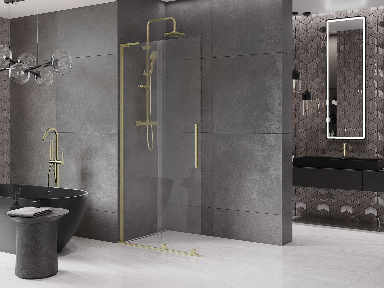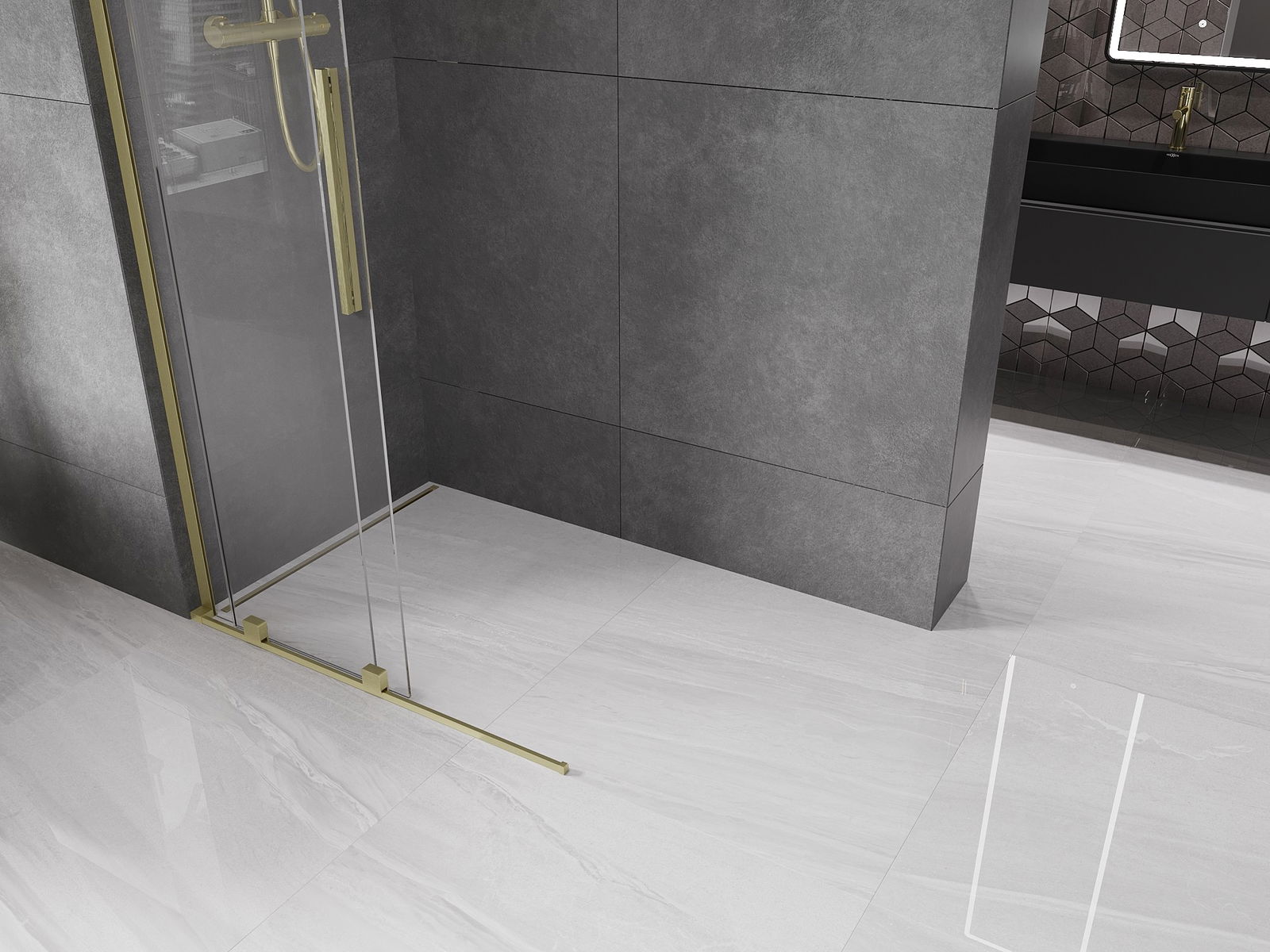 Mexen Velar L posuvná sprchová stena Walk-in 120 x 200 cm, priehľadná 8 mm, zlatá kartáčovaná - 871-120-003-03-55