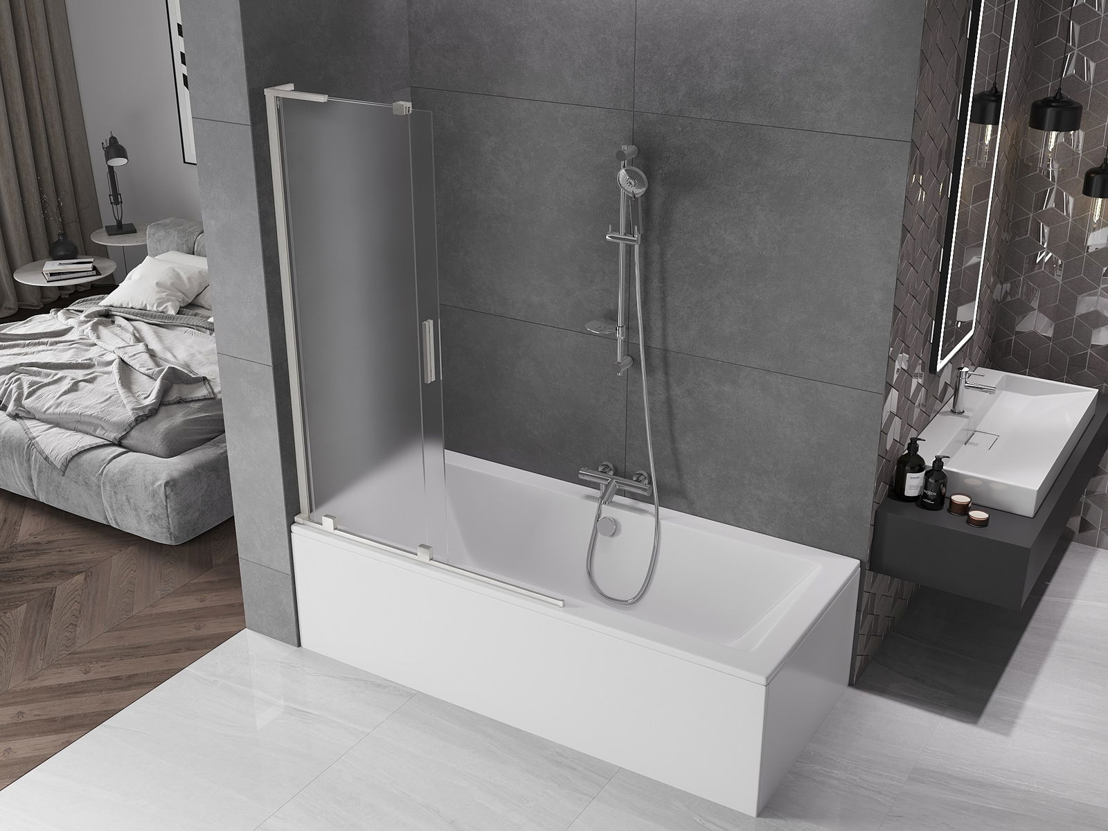Vďaka použitiu univerzálneho montážneho systému môže byť priečka namontovaná na pravej alebo ľavej strane, podľa potreby. Týmto spôsobom môžete ľahko navrhnúť sprchu prispôsobenú priestoru kúpeľne.